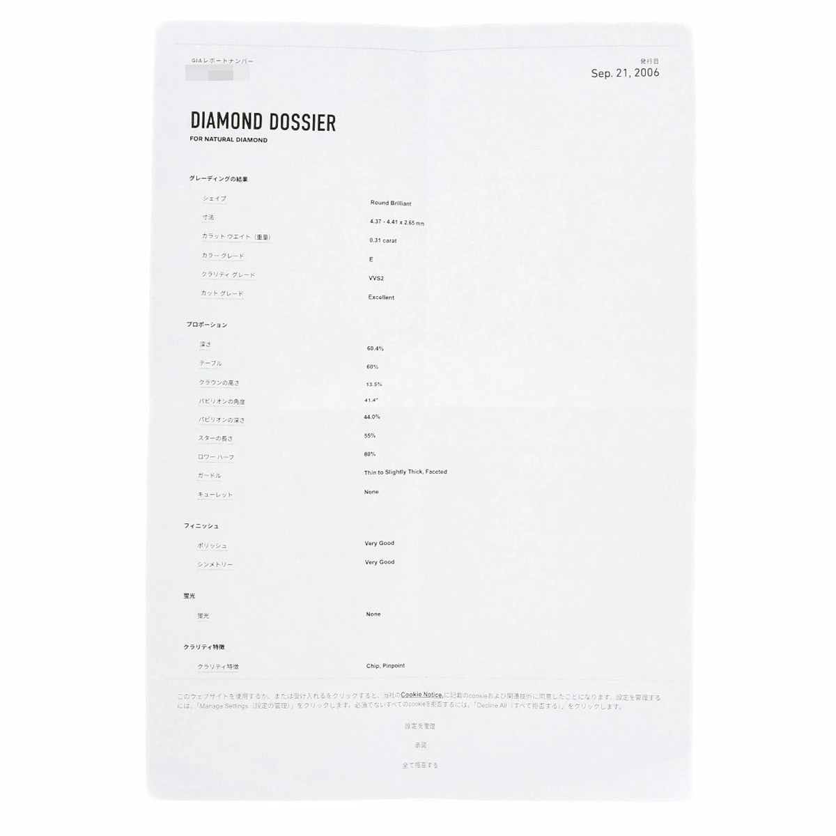 | 付属品 | GIAレポート(コピー) |