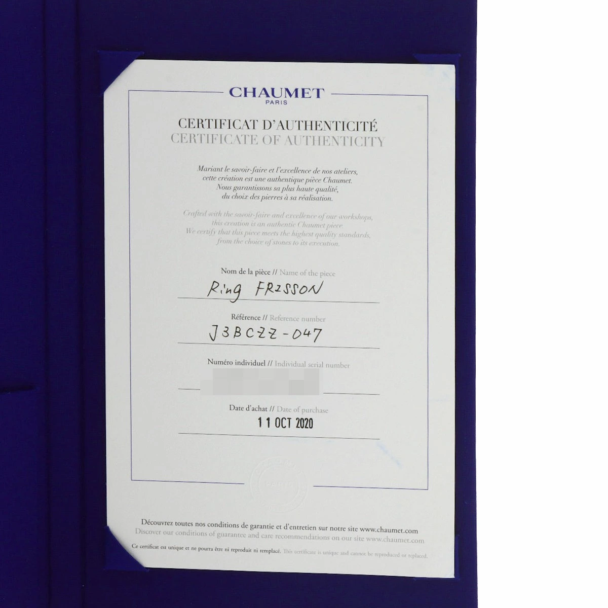 | 付属品 | ショーメ保証書・GIA鑑定書 |