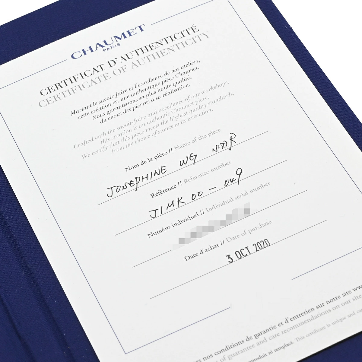 | 付属品 | ボックス 鑑定書 保証書(国内・2020年購入) ※記載している物以外の付属品は御座いません。 |