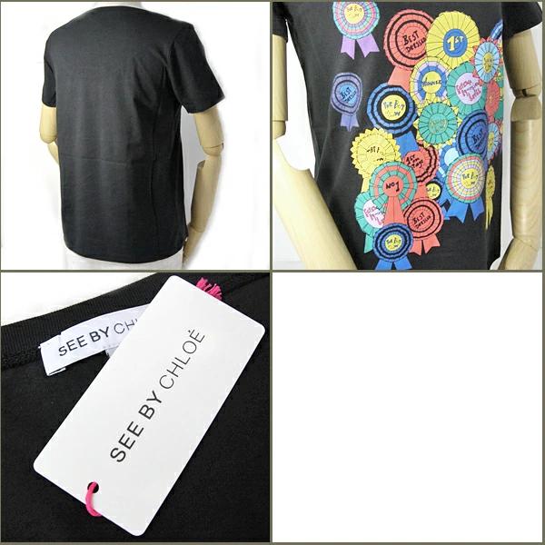 シーバイクロエ SEE BY CHLOE 半袖Tシャツ 缶バッジ/ブラック カラフルな缶バッジのモチーフが散りばめられたTシャツ。 これからの季節にも、ぴったりなカラーリングです。