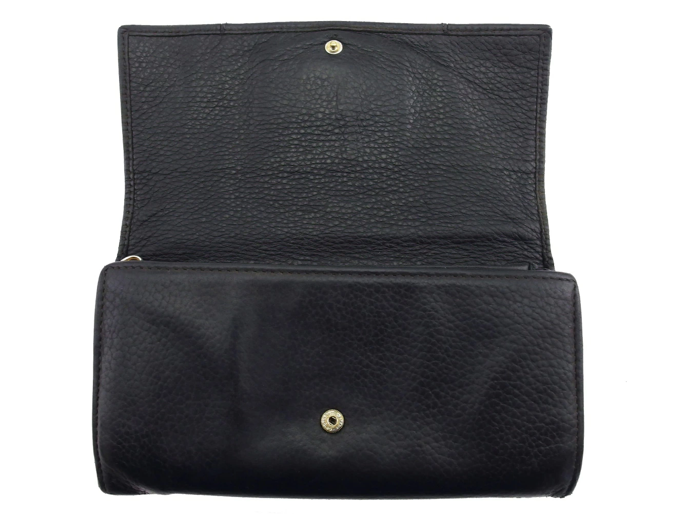 コンディション全体の状態詳細:使用感がありますが、まだまだお使いいただけます。社外リペア跡(角キレコーティング、スレ色着色)あり。その他 スレ&汚れ(内側&札入れ&小銭入れ&カード入れ&ポケットもあり) 角スレ 色褪せ 変色(小銭入れ) ヒビ割れ(角縁) 金具傷・ハゲ などの使用感があります。