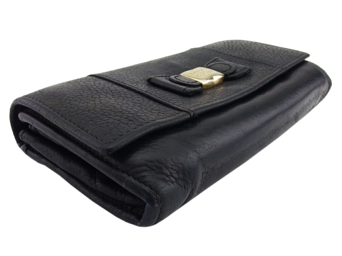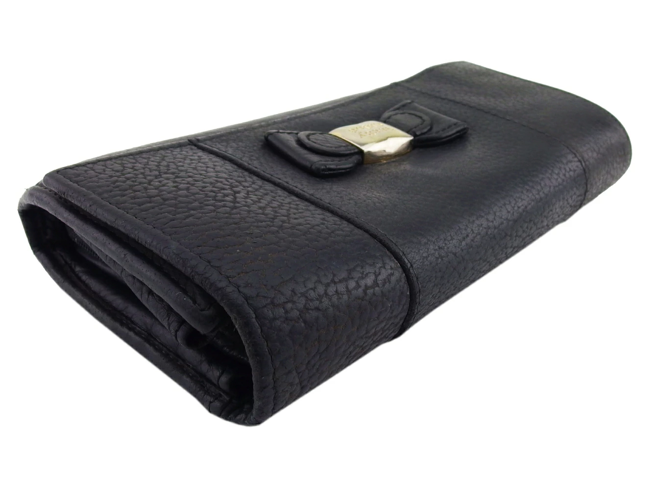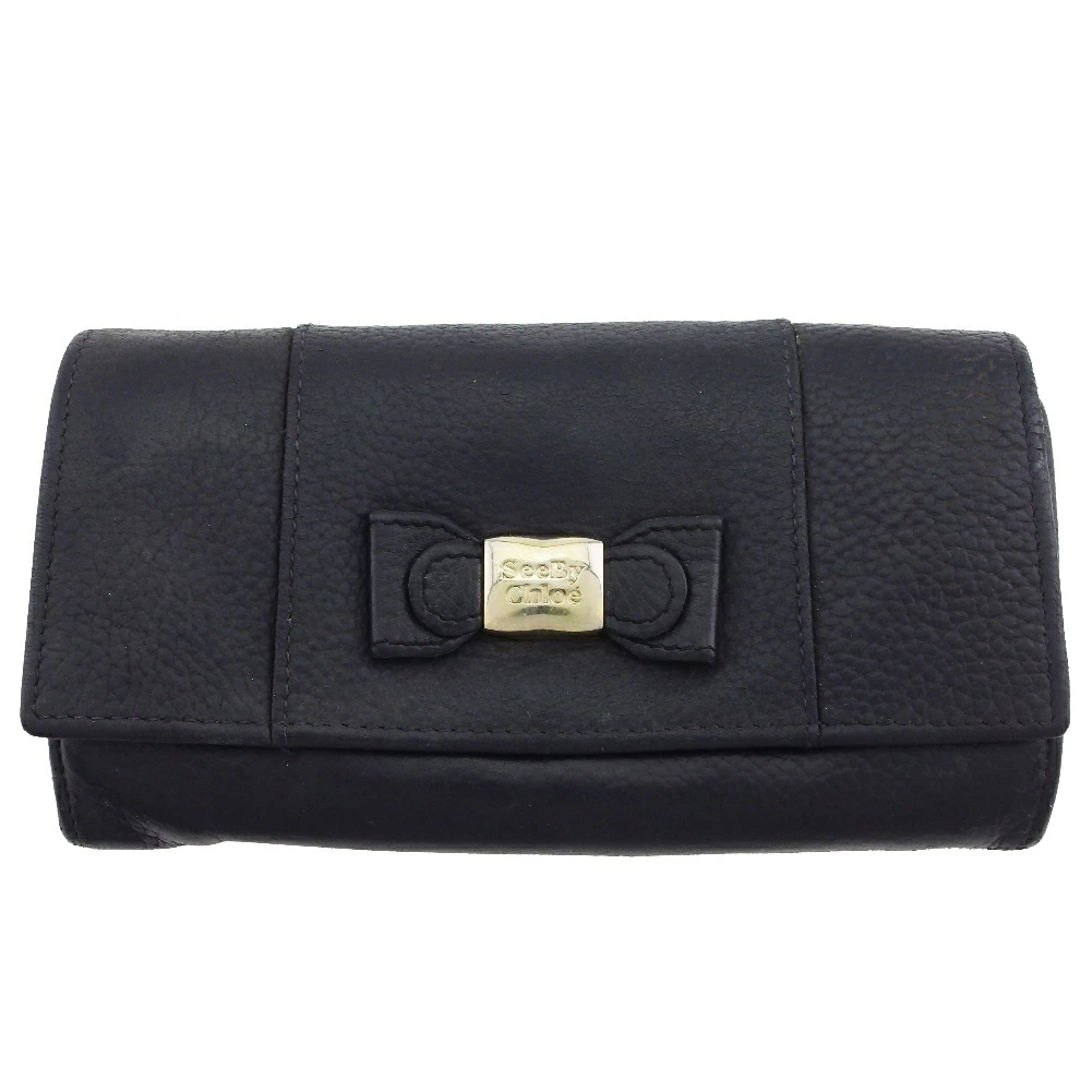 Pre-owned SEE BY CHLOE KAY long wallet with L-shaped zipper and ribbon, black leather with gold hardware, for women.