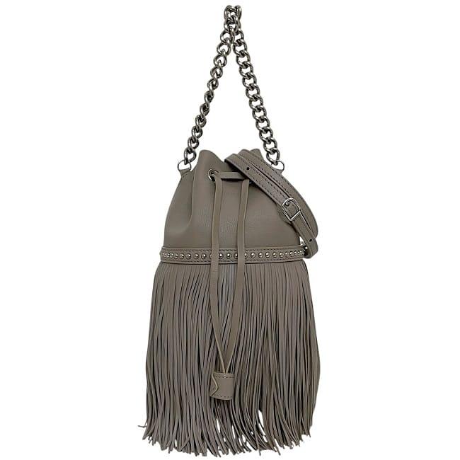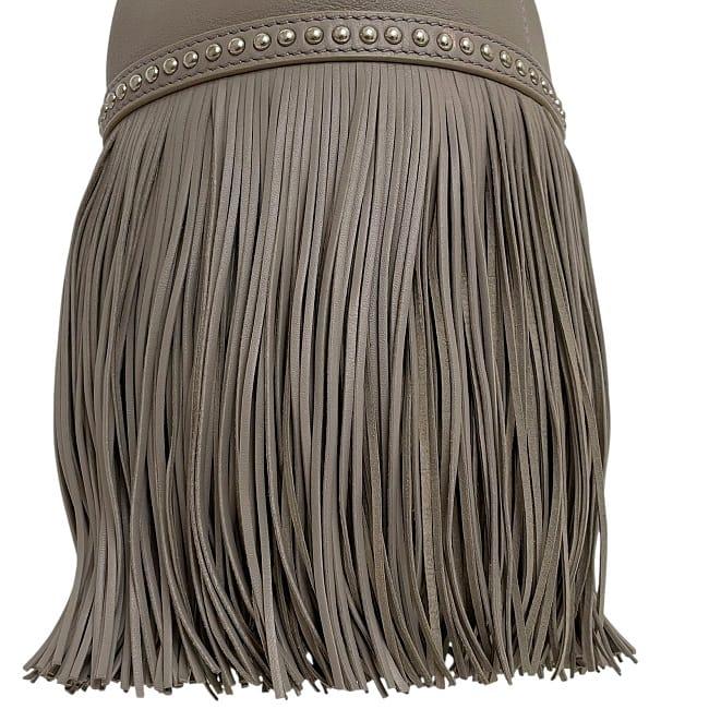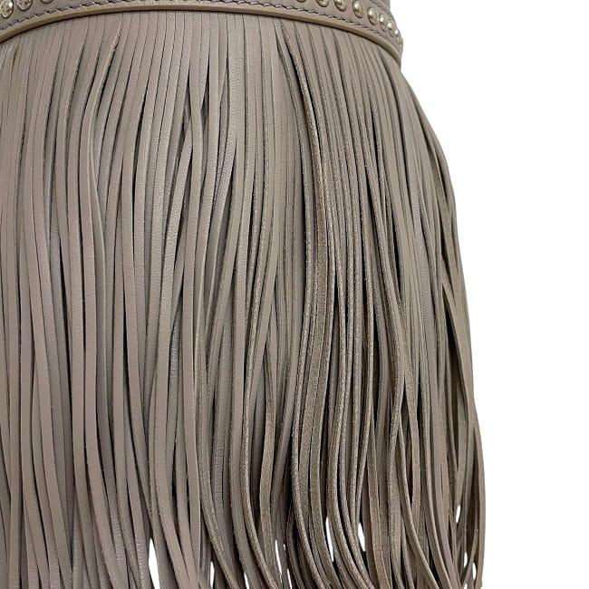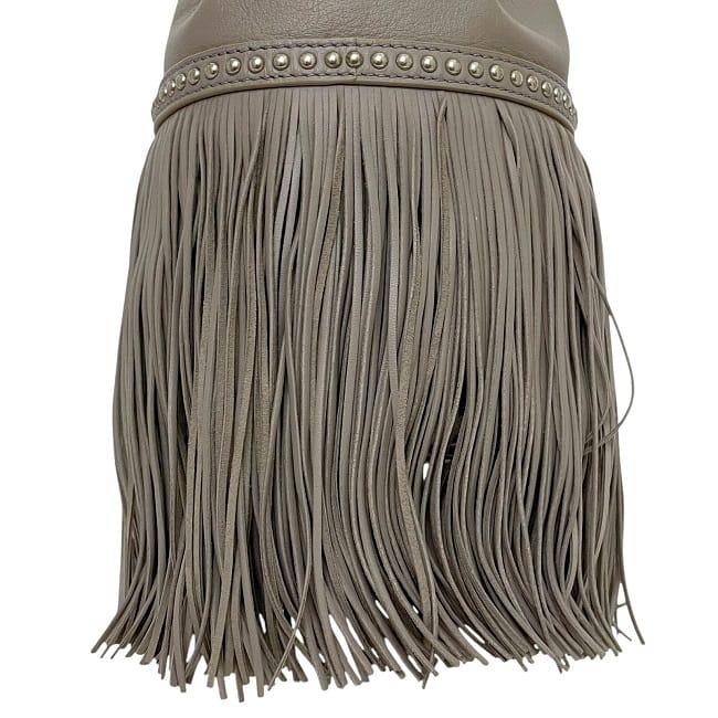 ジェイアンドエム デヴィッドソン 2way バッグ ミニ フリンジ カーニバル f-23973 グレー 1856N 美品 バケットバッグ レザー 中古 MBJ J&M DAVIDSON 巾着バッグ 巾着 ハンドバッグ 肩掛け ショルダーバッグ チェーン 灰色 人気 定番 ブランド 本物 鑑定済み