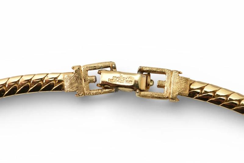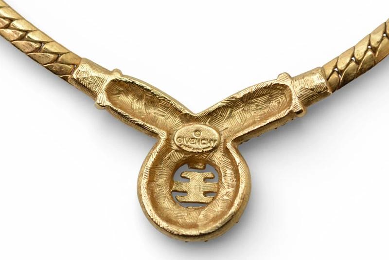 | 商品説明 | GIVENCHY(ジバンシィ)のヴィンテージチョーカーです。ゴールドカラーのメタルに、繊細にあしらわれたラインストーンが輝く、上品で華やかなデザインが魅力の一本。首元にすっきりと沿うチョーカータイプで、ドレススタイルはもちろん、シンプルな装いのアクセントにも最適。 ヴィンテージらしいクラシックな佇まいは、現行品にはない特別感があります。普段使いからパーティーシーンまで幅広く活躍し、大人の女性にぴったりのエレガントなジュエリーです。 |