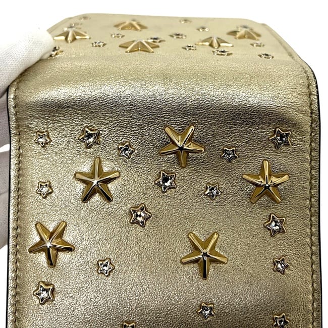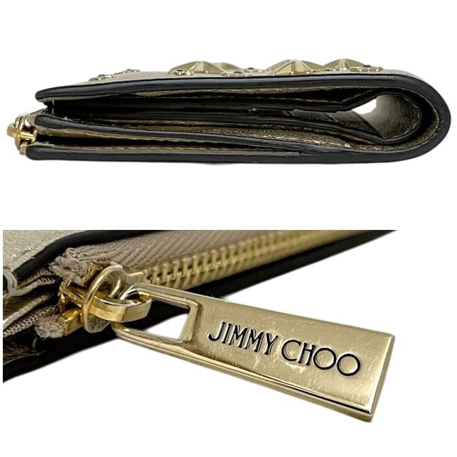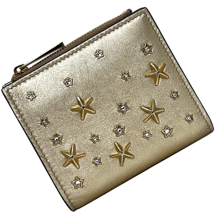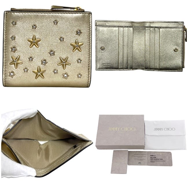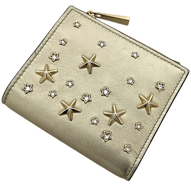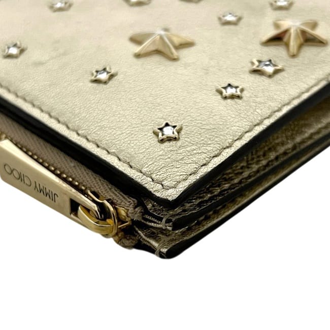 ☆---- 商品について ----☆ジミーチュウ 二つ折り 財布 ec-25418 ゴールド 金色 HANNI U AUR OO0955 美品 星 レザー スタッズ 中古 JIMMY CHOO