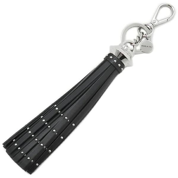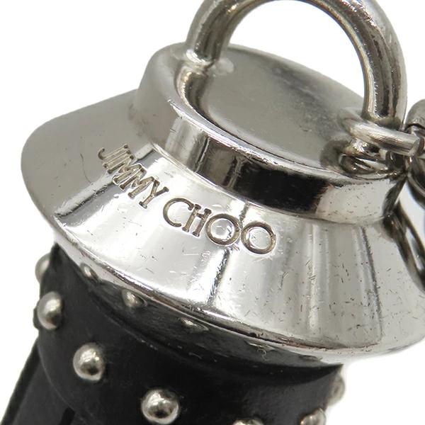 【【 ジミーチュウ JIMMY CHOO バッグチャーム スタッズ タッセル メタル/レザー ブラック黒 フリンジ キーホルダー シルバー金具 レディース【箱】 定番 人気 美品 【中古】】 【ジミーチュウ JIMMY CHOO】