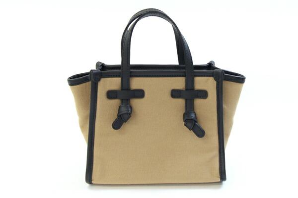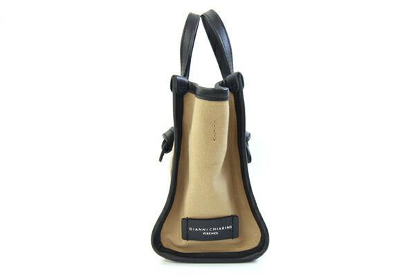 ジャンニキアリーニ2WAYハンドバッグミスマルチェッラBS8065ダークベージュブラックキャンバスレザー中古ショルダーバッグ斜め掛け鞄ミニバッグレディースGIANNICHIARINI