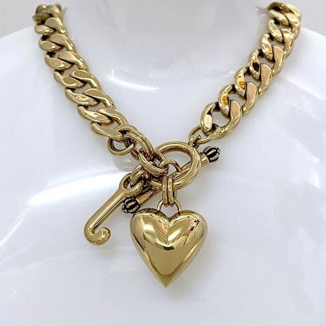 コメント:太めのチェーンに厚みのあるハートモチーフがアクセントのお洒落なネックレス。首元に存在感と華やかさをプラスしてくれるお品物です。