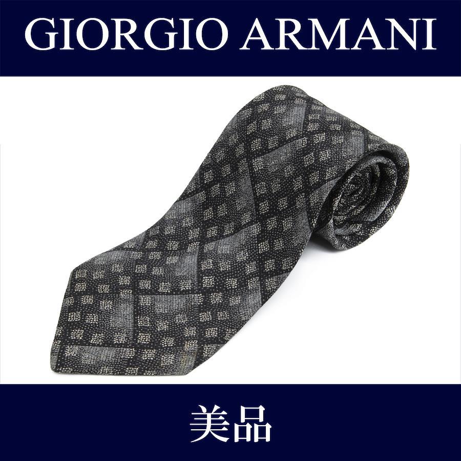 喬治·阿瑪尼 (Giorgio Armani) 領帶,寬領帶,印花領帶,男士和女士,絲綢,黑色或灰色,商務或休閒,方形,幾何圖案,獨特,時尚,意大利製造,漂亮,N997