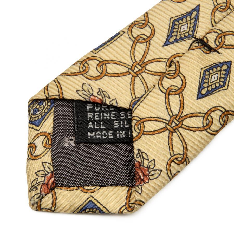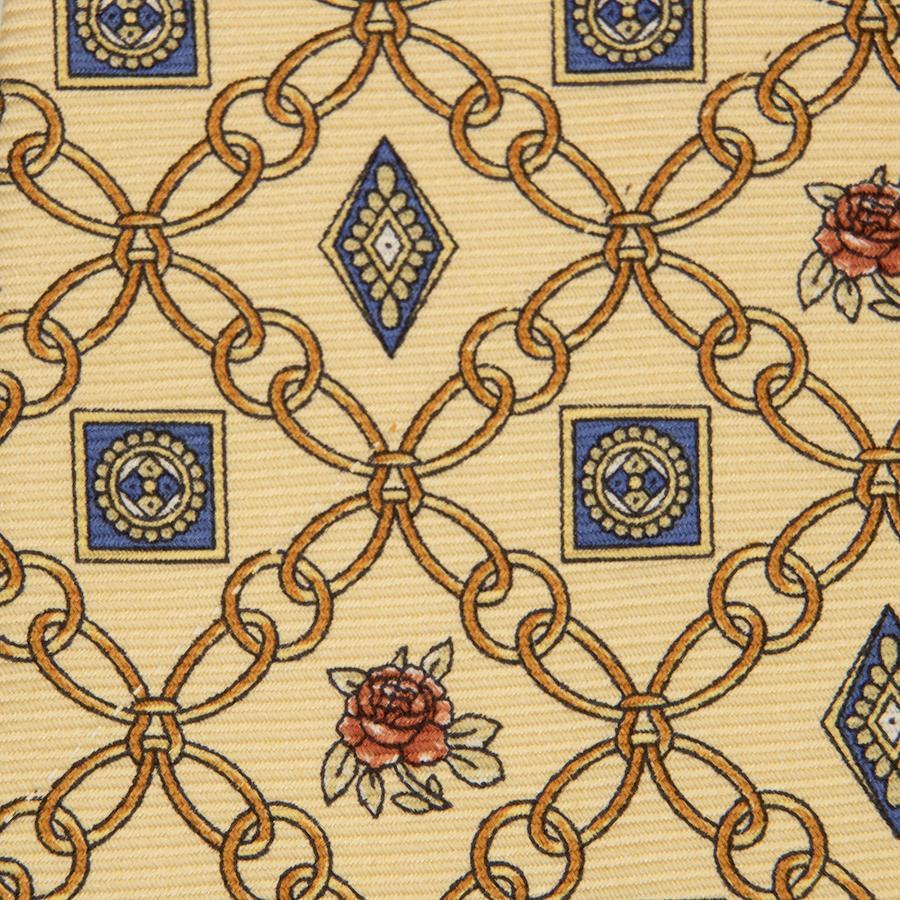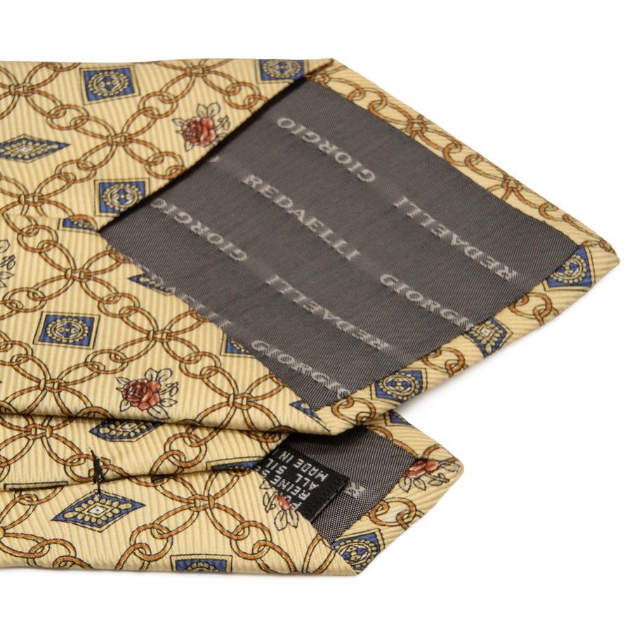 Giorgio Redaelli 寬邊印花領帶,男女皆宜,真絲材質,有黃色、奶油黃、橙色、藍色和紅色可選。這款方形領帶飾有花卉圖案和鏈條,適合商務和休閒場合。這款罕見時尚的領帶產自義大利。產品編號:P154