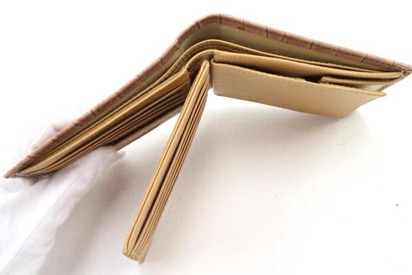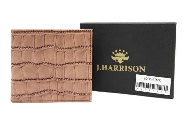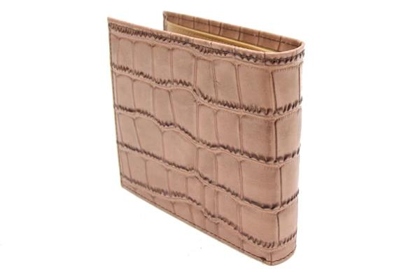 John Harrison bi-fold wallet in pink beige leather. Brand new, unused, crocodile-embossed, with card holder and compact wallet. Men's. J.HARRISON