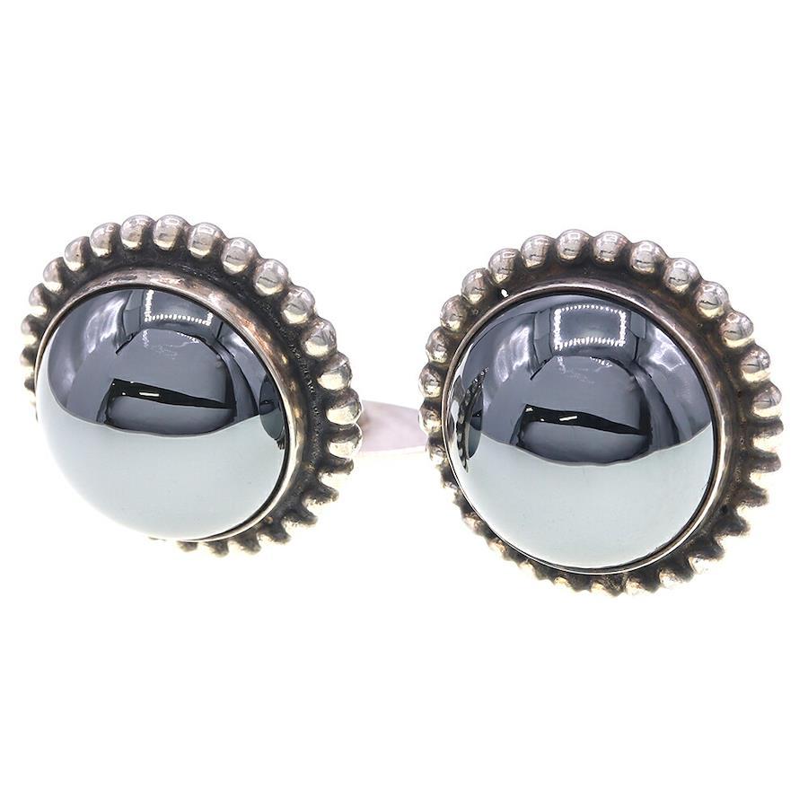 ジョージェンセンカフスデザインナンバー25SVスターリングシルバー925ヘマタイト中古カフスボタンカフリンクスビジネスメンズGEORGJENSEN