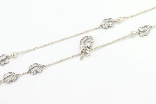 | サイズ | 長さ(内周):約53cm トップ・リーフモチーフ:約1.1cm×1.4cm リーフモチーフ:約1cm×1.2cm ボールモチーフ:直径約0.5cm 重さ:約23.8g |