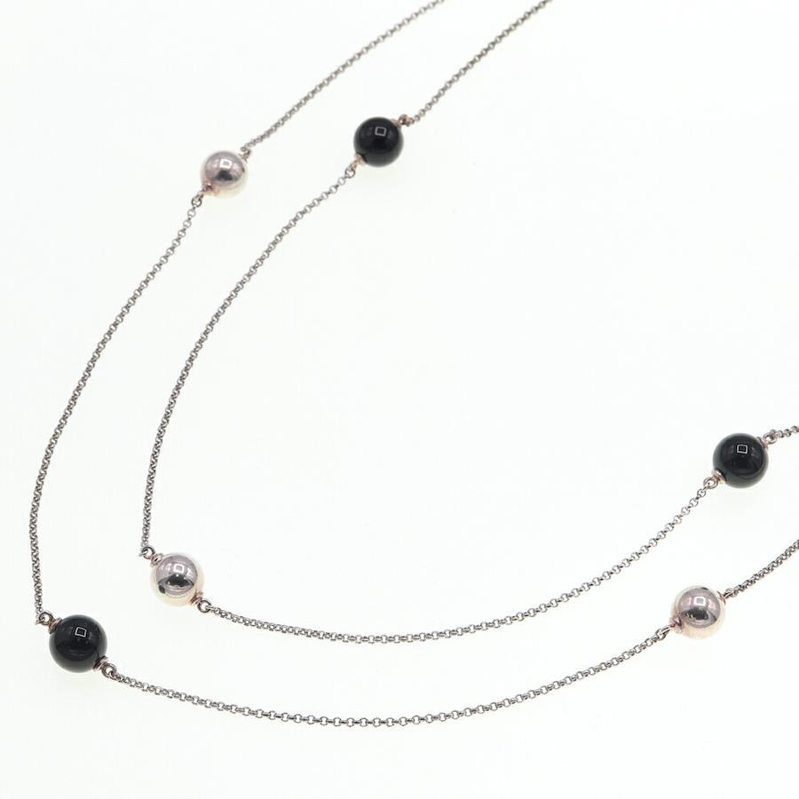 ジョージジェンセンネックレススフィアロングネックレスシルバーブラックSVスターリングシルバー925中古ボールアクセサリーレディースGEORGJENSEN