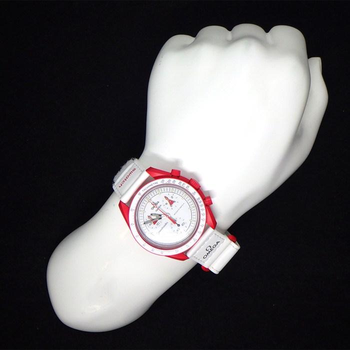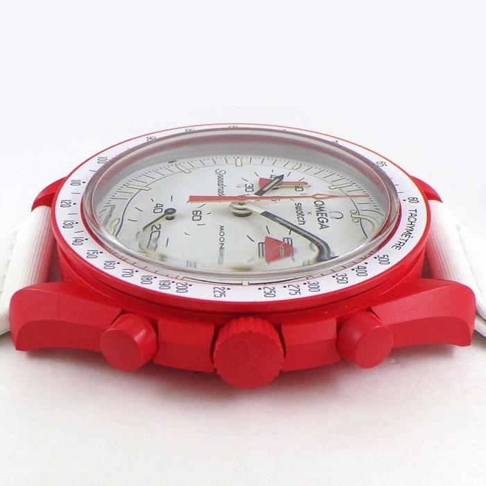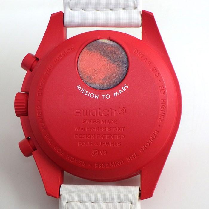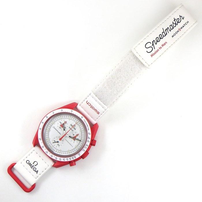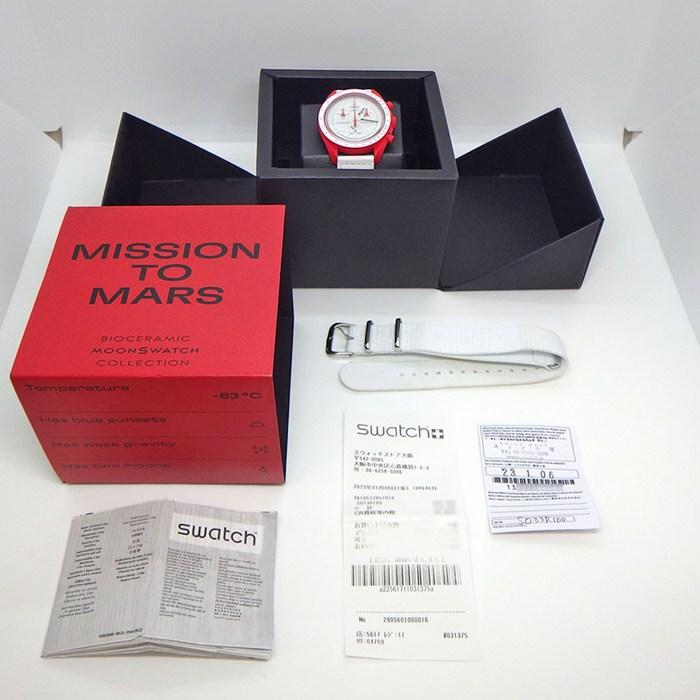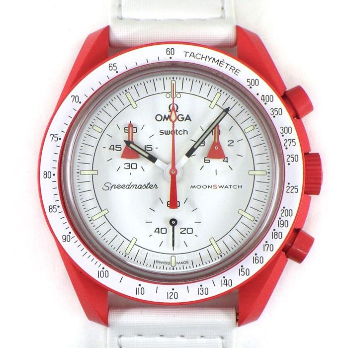 ■商品名スウォッチ×オメガ Swatch×OMEGA 腕時計 バイオセラミック ムーンスウォッチ コレクション ミッション トゥ マーズ SO33R100 クロノグラフ ホワイト文字盤 レッド バイオセラミック ホワイト ナイロン ベルクロストラップ クオーツアナログ 【箱・保付き】 【中古】