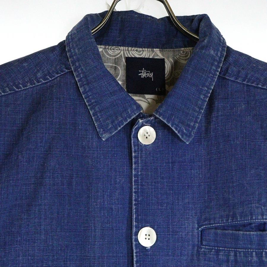 [モデル]裏地総柄 3ポケット カバーオール デニムジャケット インディゴ
