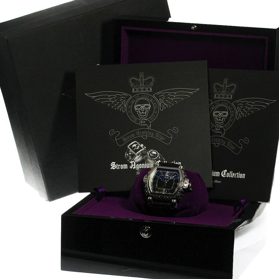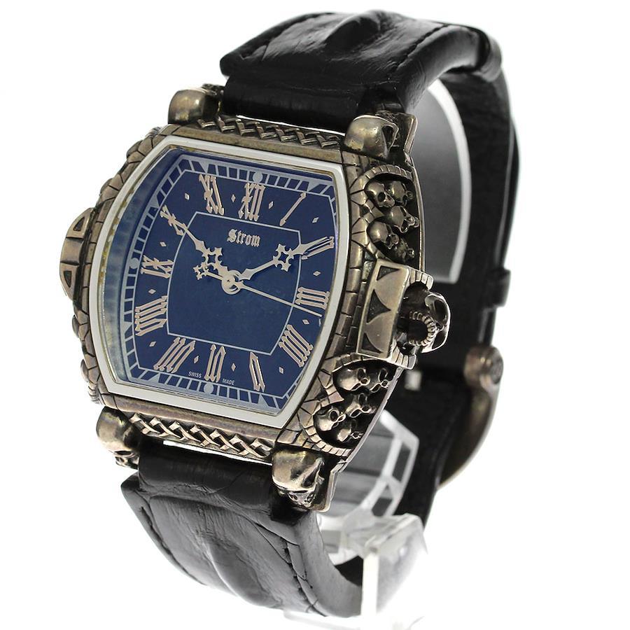 ■商品情報ブランド: ストローム アゴニウム コレクション/Strom Agonium Collectionモデル名: メメント・モリ対象: メンズ素材: SS × 革文字盤色: ブラックムーブメント:自動巻きRef.No: C09-01シリアル:4*/88付属品:外箱,内箱,保証書(冊子),取扱説明書ケースサイズ(w):約 48mmベルトサイズ:約 20cm※ベルトサイズとは、ケース部分も含めた総腕回りのサイズになります。ラグ幅: 26mm日差: +3秒/日 ※参考値OH歴: 弊社では実施しておりません。保証書の情報: 2013/07/03