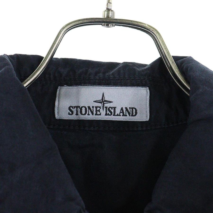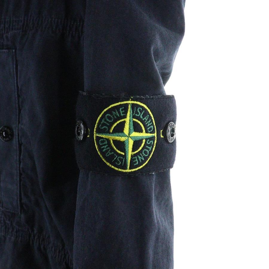 Stone Island Cotton Shirt, Zip-Up Jacket with Sleeve Logo Patch, Navy, K1S151200032S00WN, Size S, Navy