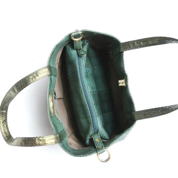 | トートバッグSNAKE カギ付ポーチイン2WAY 高級革レディース 14678Aグリーン |