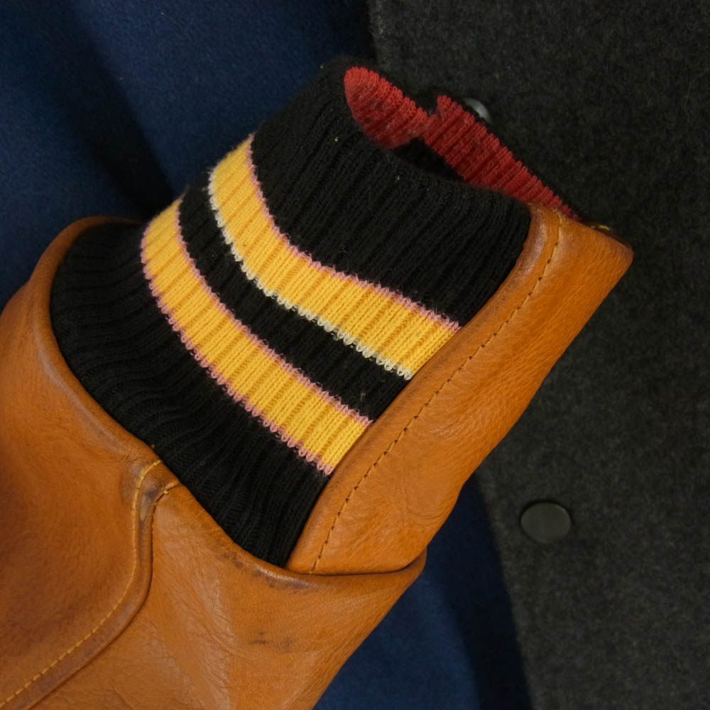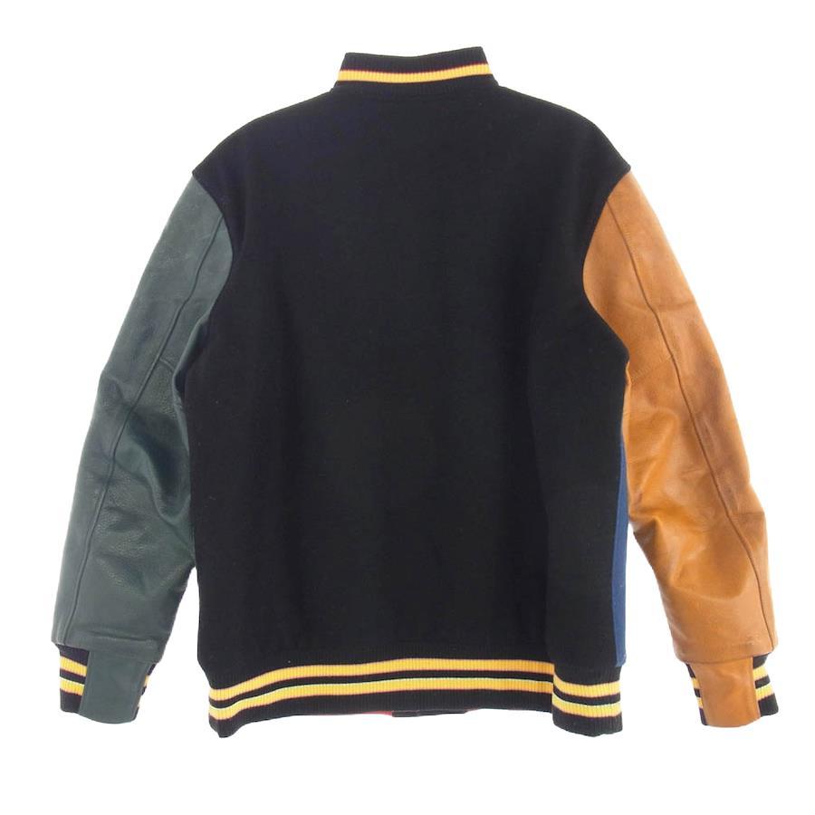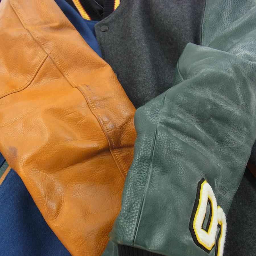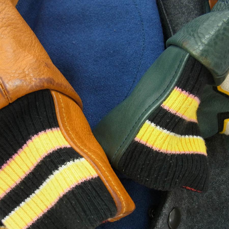 マルチカラー系【モデル】リバーシブル レザースリーブ ウール スタジアムジャケット スタジャン 裏地キルティング