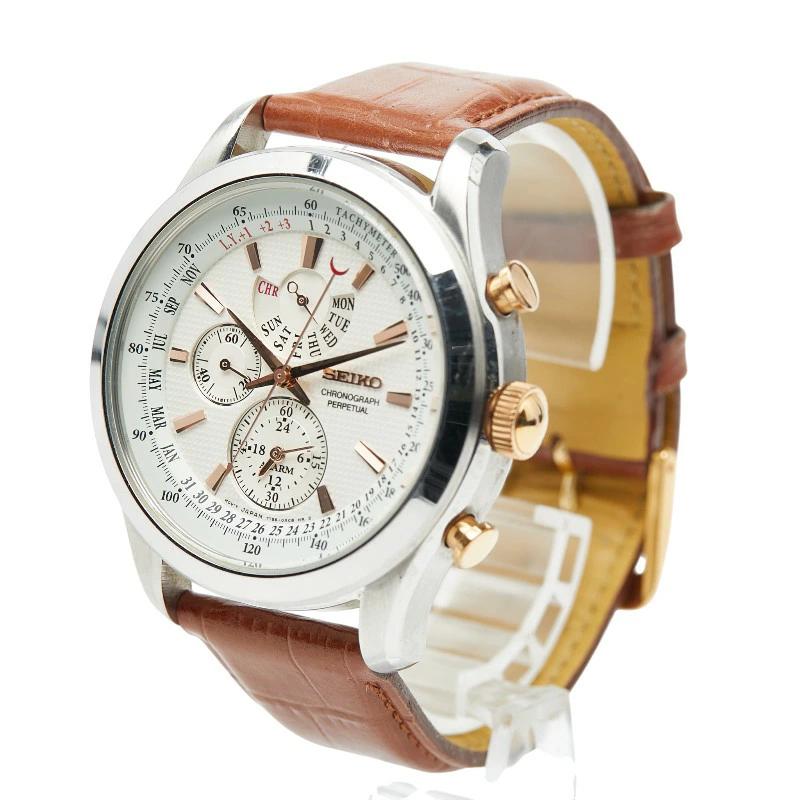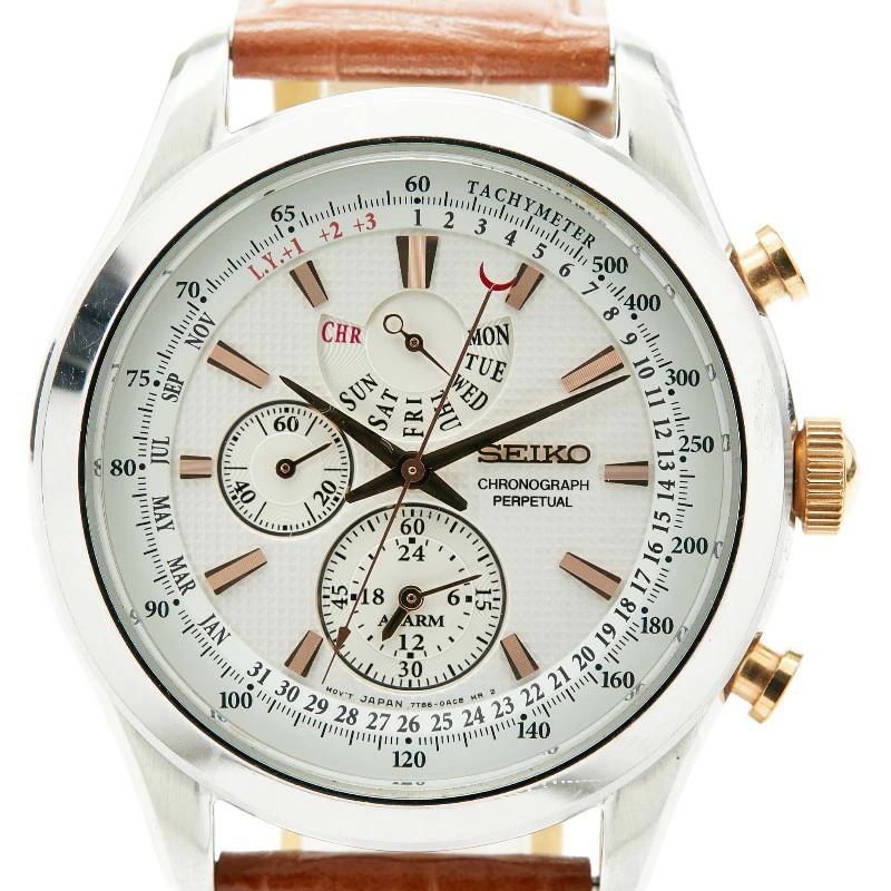 - セイコー アラーム パーペチュアル クロノグラフ 腕時計 7T86-0AC0(SPC129P) 日本製クオーツ ホワイト文字盤 ステンレススチール メンズ SEIKO 【中古】
