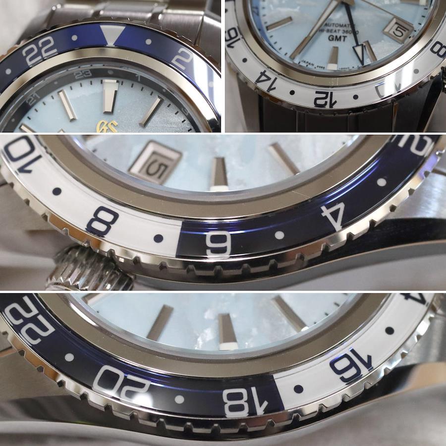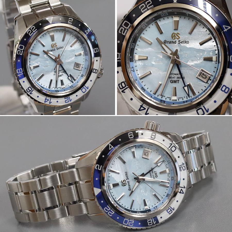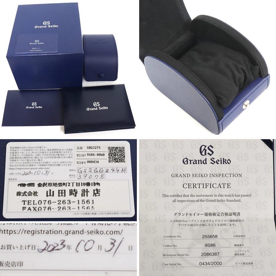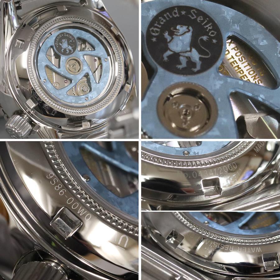 グランドセイコーのメンズウォッチ、スポーツコレクション メカニカルハイビート36000(SBGJ275)9S86-00W0の中古品です。キャリバー9Sの誕生25周年記念限定モデルで、グランドセイコースタジオ雫石から望む岩手山に広がる「雲海」と空の美しさを表現した時計です。全世界2,000本限定で、限定のシリアル刻印があります。ベゼルのステンレス部分に小傷があります。ケースに小傷があります。ベルトに小傷があります。全体的に小傷がありますが、肉眼では目立ちません。保証書が付属し、記載の購入日は2023年10月31日です。付属品は以下の通りです。内外箱保証書グランドセイコー規格検定合格書+---+---+---+---+---+。{状態}ケースABベルトAB{素材}ケースSSベルトSS{サイズ} ケース:約44mm ,ストラップ:約21cm。{ムーブメント}自動巻き{一日あたりの精度}腕時計が水平の状態+3秒腕時計が垂直の状態+5秒{その他}20気圧防水デイト表示裏スケルトン etc...。{付属品}内外箱,保証書,グランドセイコー規格検定合格書{お問合せ商品番号}25116008+---+---+---+---+---+。