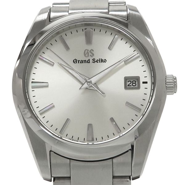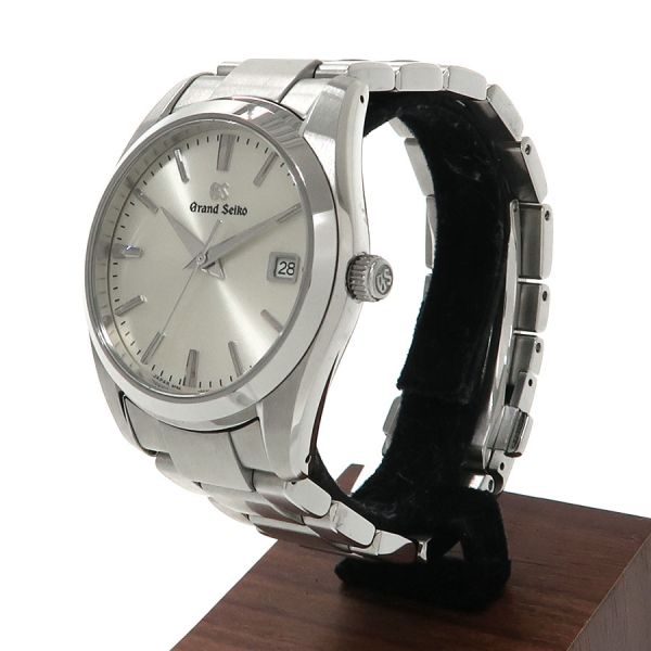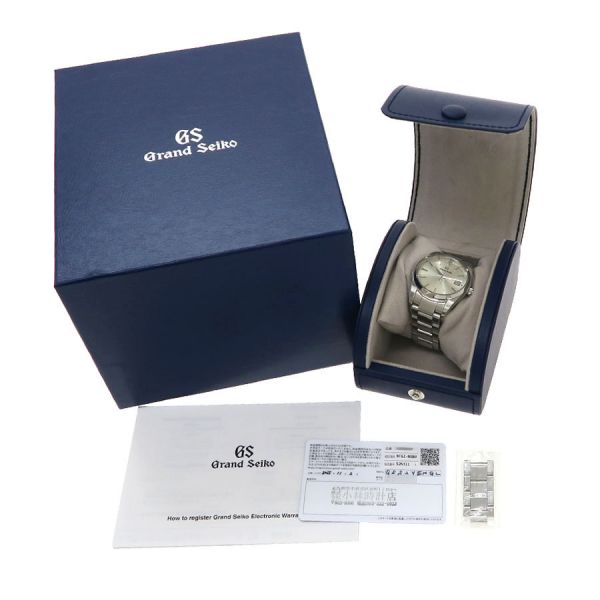 この時計は、「正確であること」「時刻を読み取りやすいこと」「一生つきあえる時計であること」等、あたりまえと思われることを徹底的につきつめた結果、生まれたました。見やすく、着け心地良く、そして長くご愛用いただける逸品とセイコー自身が自負する1本です。シルバーダイアルの3時位置に日付表示を配したデザインは年代を問わず受け入れ易く、落ち着いた印象を与えます。付属の保証書には2025年11月の記載があるため、当社ではメンテナンスを行っておりません。気になる傷や目に付く傷のない良好なコンディションです。セイコーが自信を持って送り出す グランドセイコーをお見逃し無く。