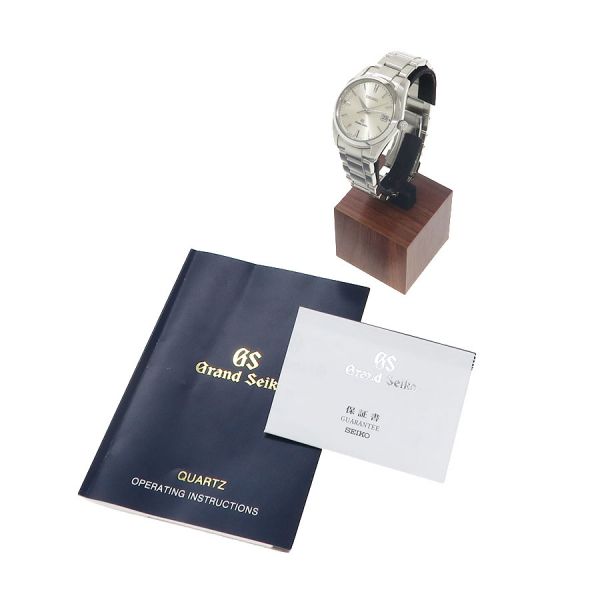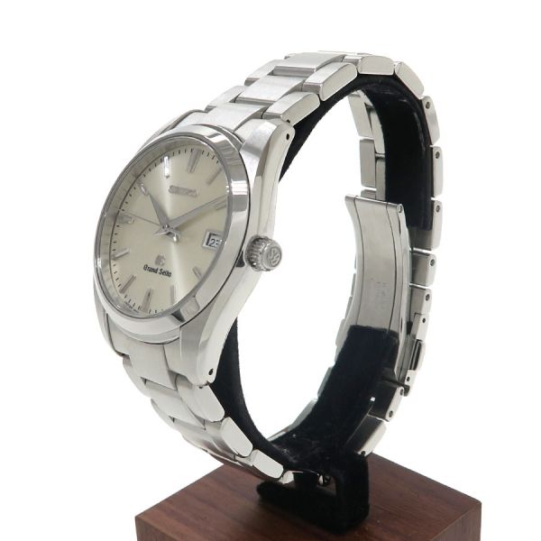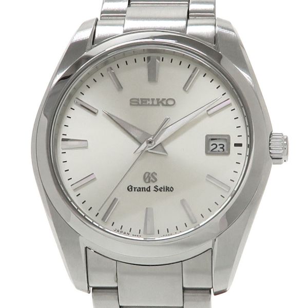 この時計は、「正確であること」「時刻を読み取りやすいこと」「一生つきあえる時計であること」等、あたりまえと思われることを徹底的につきつめた結果、生まれたました。見やすく、着け心地良く、そして長くご愛用いただける逸品とセイコー自身が自負する1本です。シルバーダイアルの3時位置に日付表示を配したデザインは年代を問わず受け入れ易く、落ち着いた印象を与えます。当社提携の時計修理工房にて電池交換を行っております。ベゼルに小傷がございます。セイコーが自信を持って送り出す グランドセイコーをお見逃し無く。