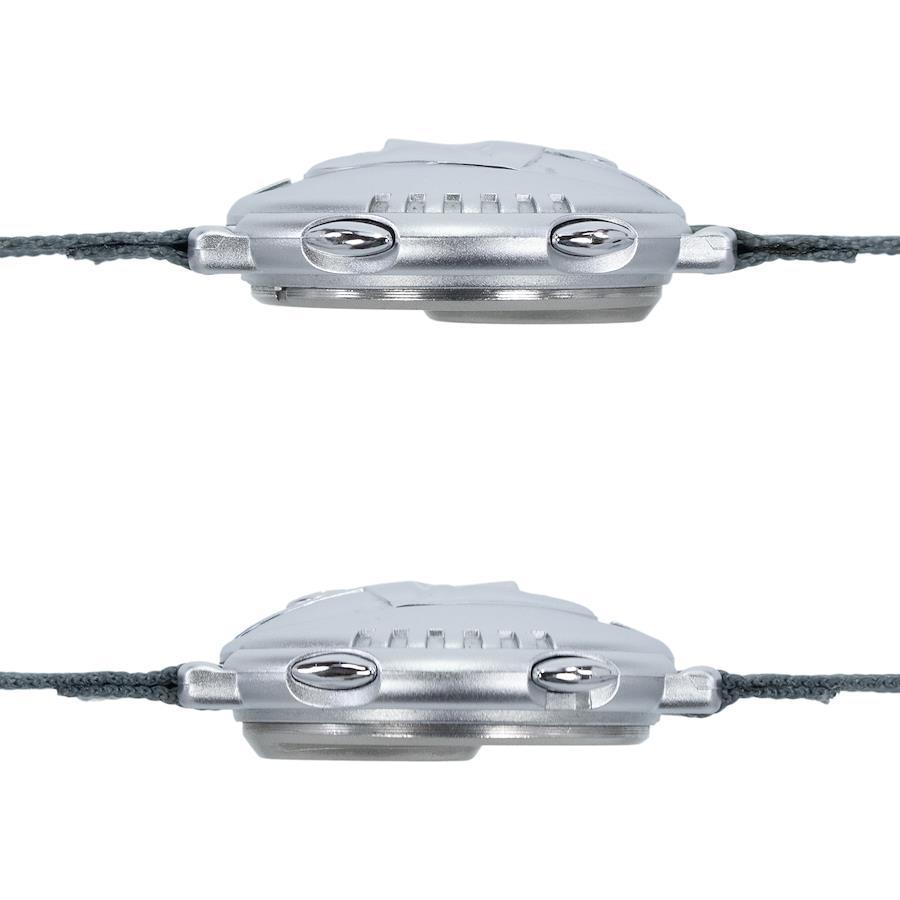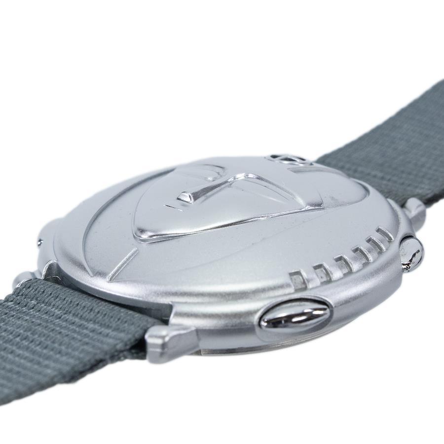 未来的なロボットの顔をモチーフにした立体的なデザインは、腕元で圧倒的な存在感を放ちます。