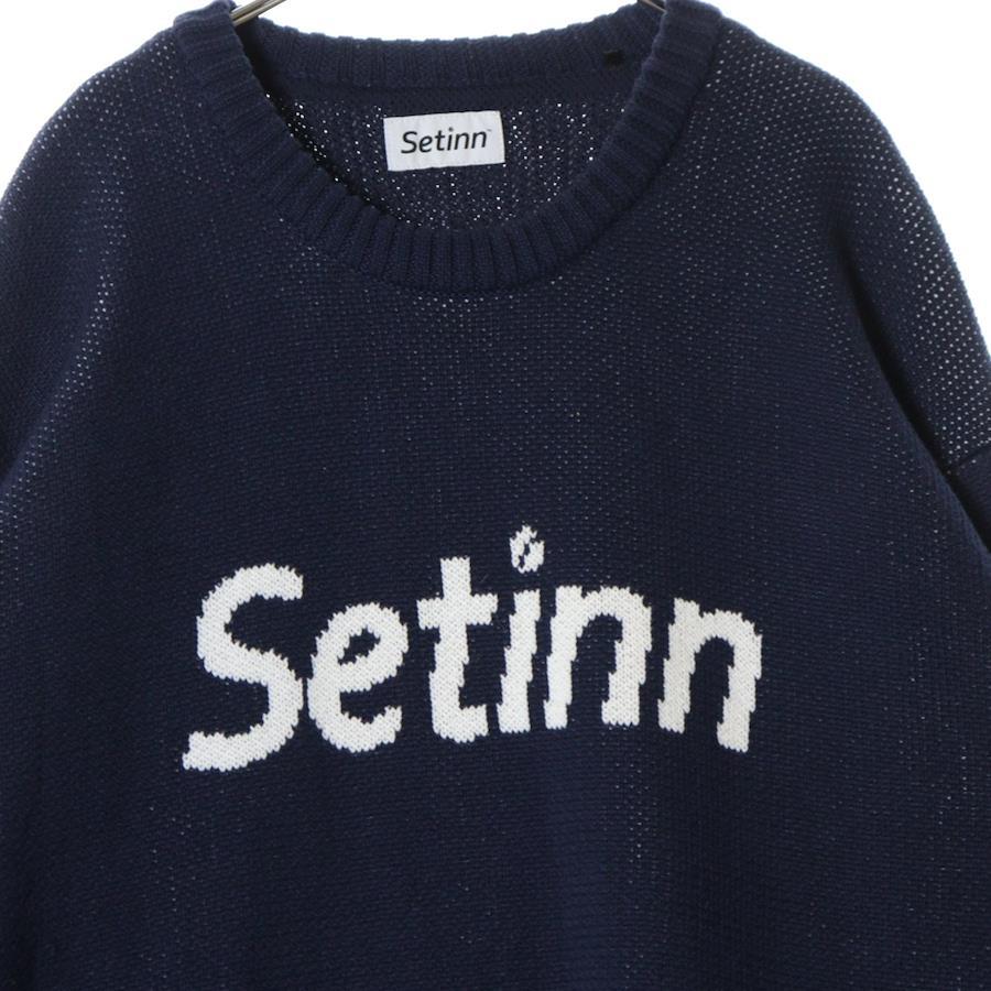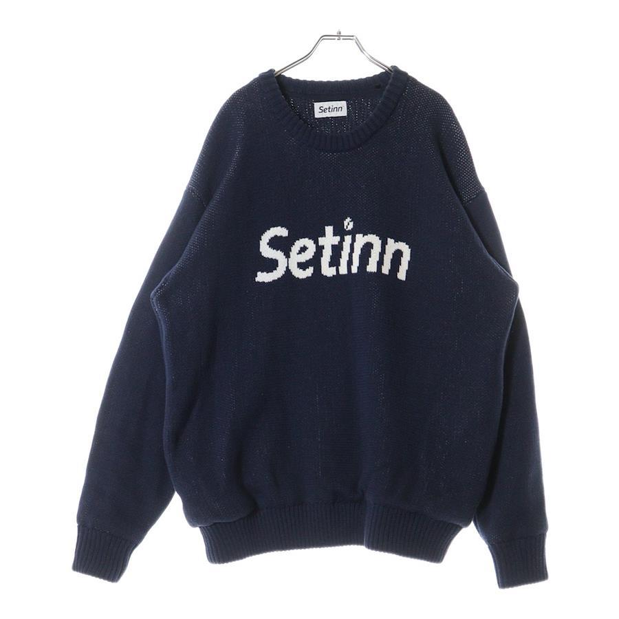 [モデル]24AW JACQUARD KNIT フロントロゴ クルーネック ジャガードニット セーター ネイビー 86-15-0008-147