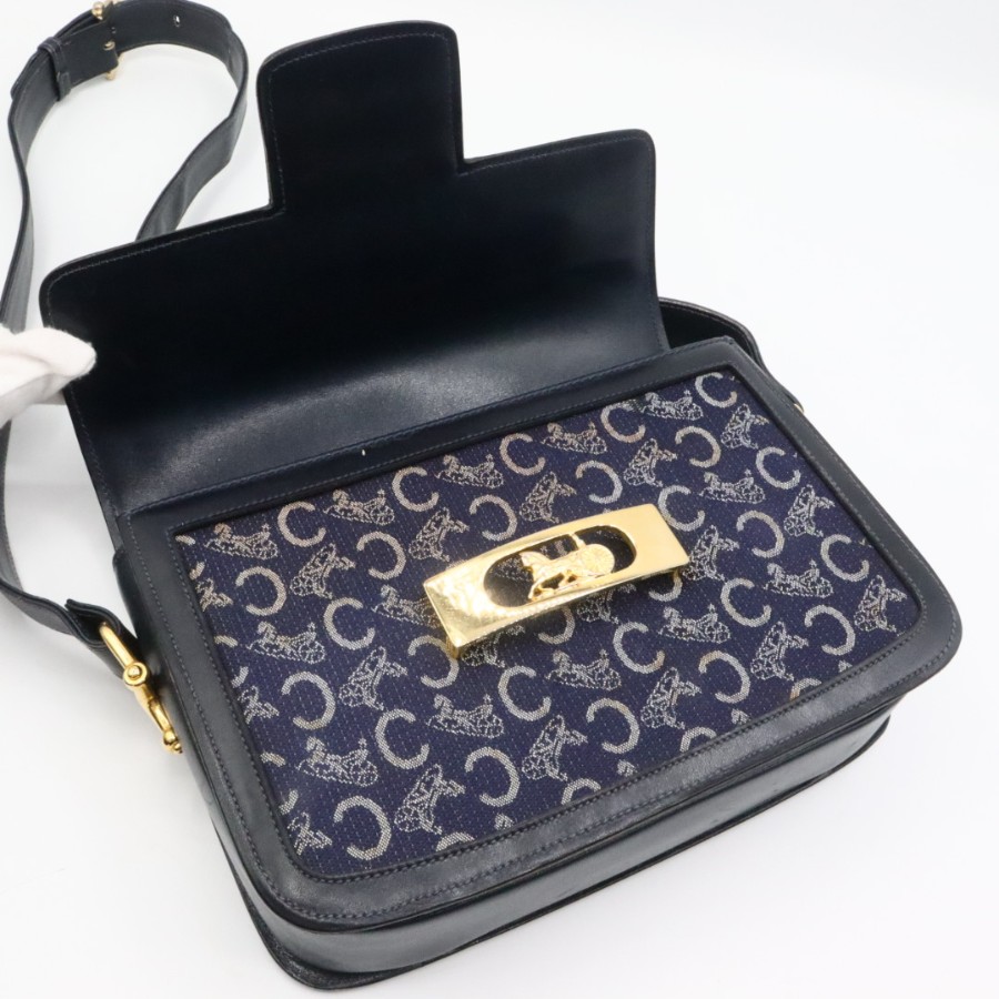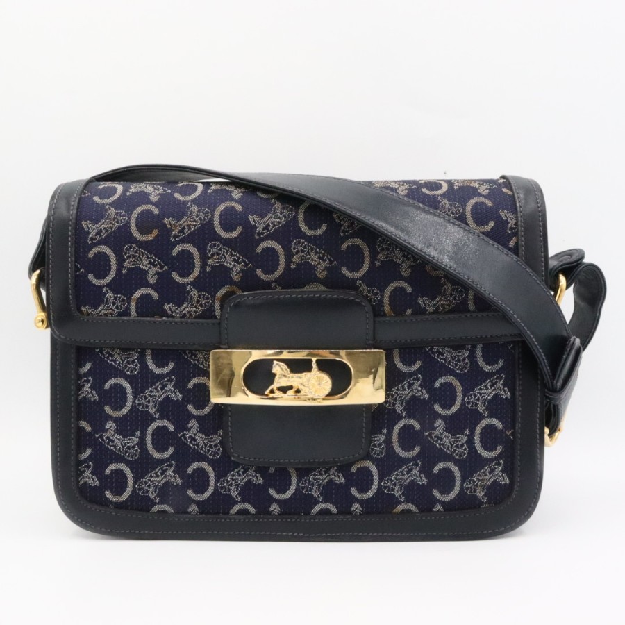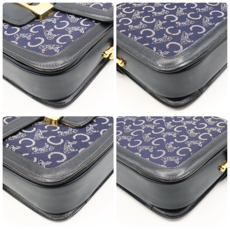 【商品説明】品名 セリーヌ キャンバス レザー 馬車金具 ショルダーバッグ ネイビー型番シリアルナンバーサイズ 約縦17センチ 横24センチ 厚み7センチ ショルダー93-100センチ仕様 ポケット1 ファスナーポケット1付属品 なし【商品状態】ベタつきありません。ファスナースムーズです。ボタンしっかりとまります。若干のスレ、ヨレがあります。表面にシミがあります。届いたらすぐに気持ちよくお使いいただけるコンディションです。この機会に是非お買い求めください