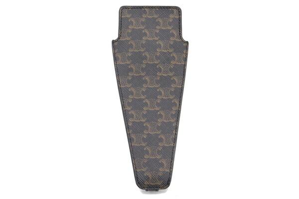 セリーヌカミソリトリオンフケース付きブラスシェービングブラシ4M0172AAV.38NOブラックダークブラウンPVCレザー中古カミソリシェーバーメンズトラベルアクセサリーCELINE