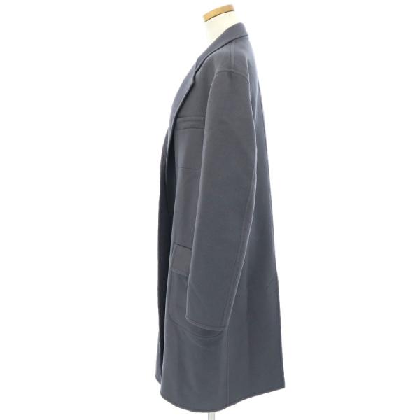 セリーヌからフィービークロンビーコートが入荷しました。カシミヤがしなやかで、ボタンはなく着流すタイプです。中にセーターを着られても袖だけ裏地が付いているので着やすいです。後ろスリット横にスレがあります。右前肩からアームホールにかけてショルダーをかけられていたのか大きくスレが見られます。衿にもスレがあり、左ポケットにはスレやヨレ・糸玉などが見られます。上ポケットはしつけ糸が付いたままです。着用感があり、全体的にうっすらとスレは見られます。収納シワもでていますが、羽織るだけで洗練されたイメージのコートです。どうぞお気軽にお問い合わせくださいませ。