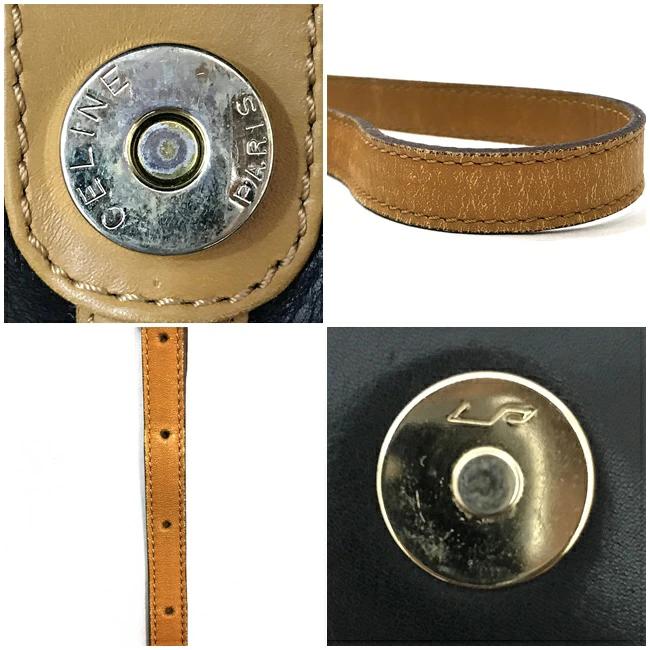 詳細説明:表面・背面レザー部分全体的に傷があります。金具に傷・くすみ汚れがあります。ショルダー紐全体的にヒビや傷がある等、使用感がございますが、大きなダメージは見当たらず、まだまだお使いいただけるお品物です