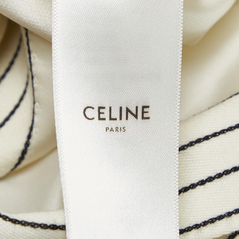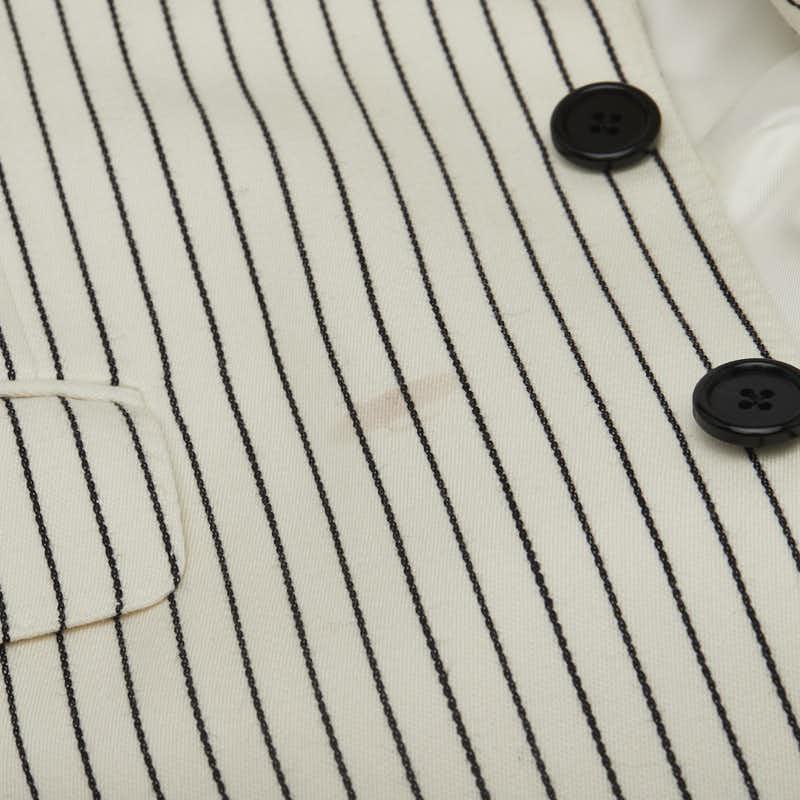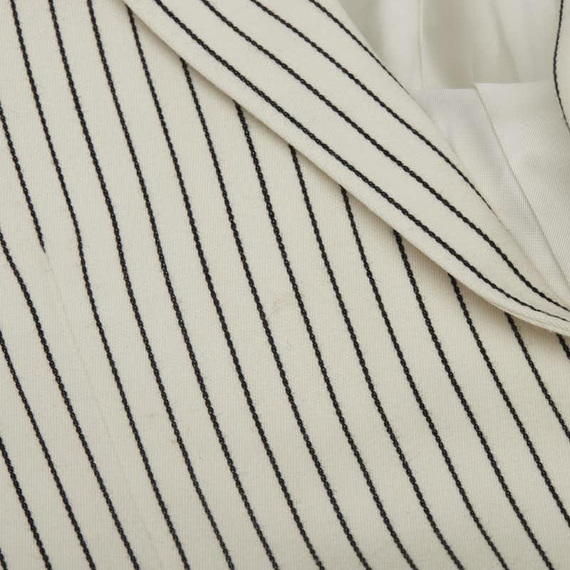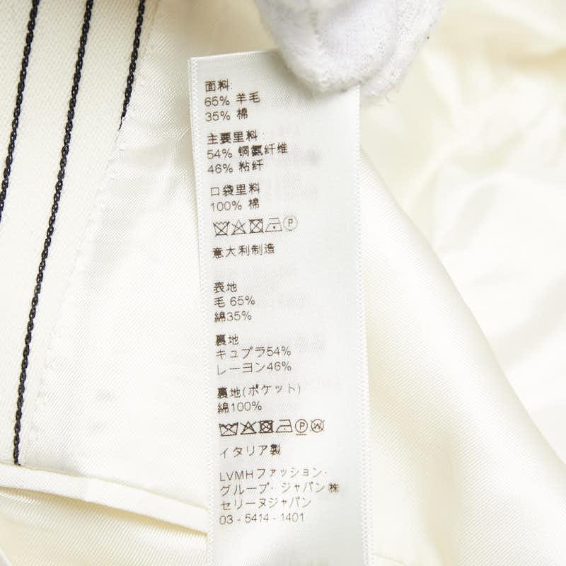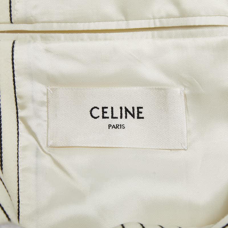 Pre-owned Celine Men's Striped 2B Tailored Jacket Blazer, Size 48, 2V376881C, Off-White, Black, Wool, and Cotton.