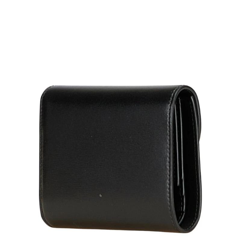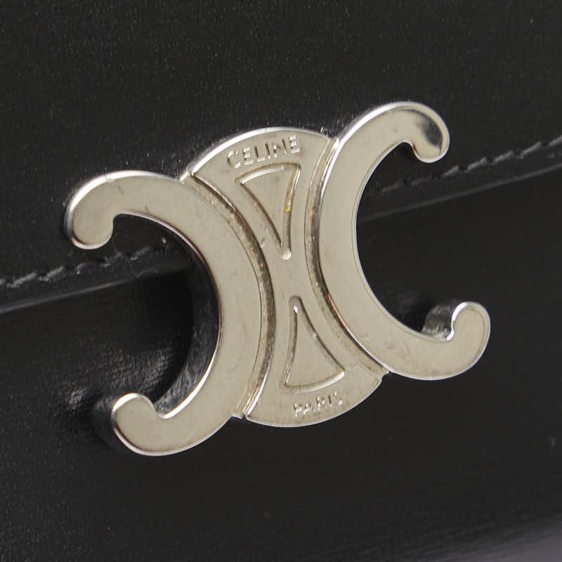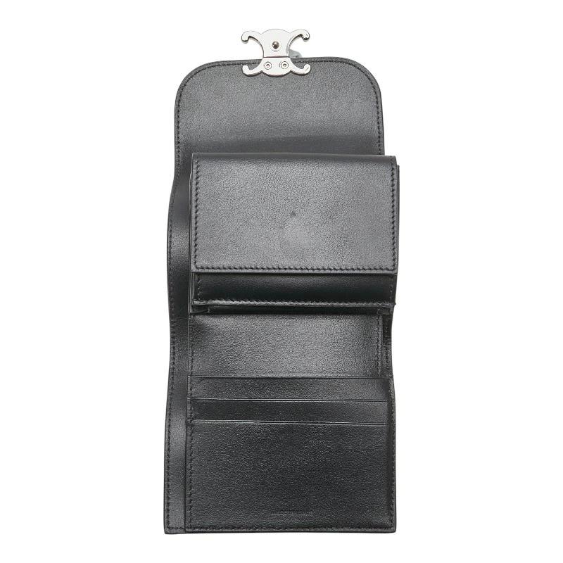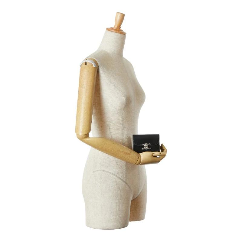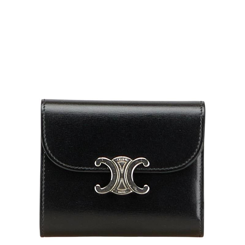 Pre-owned Celine Triomphe Small Flap Wallet, Black Leather, Tri-fold Wallet, Women's