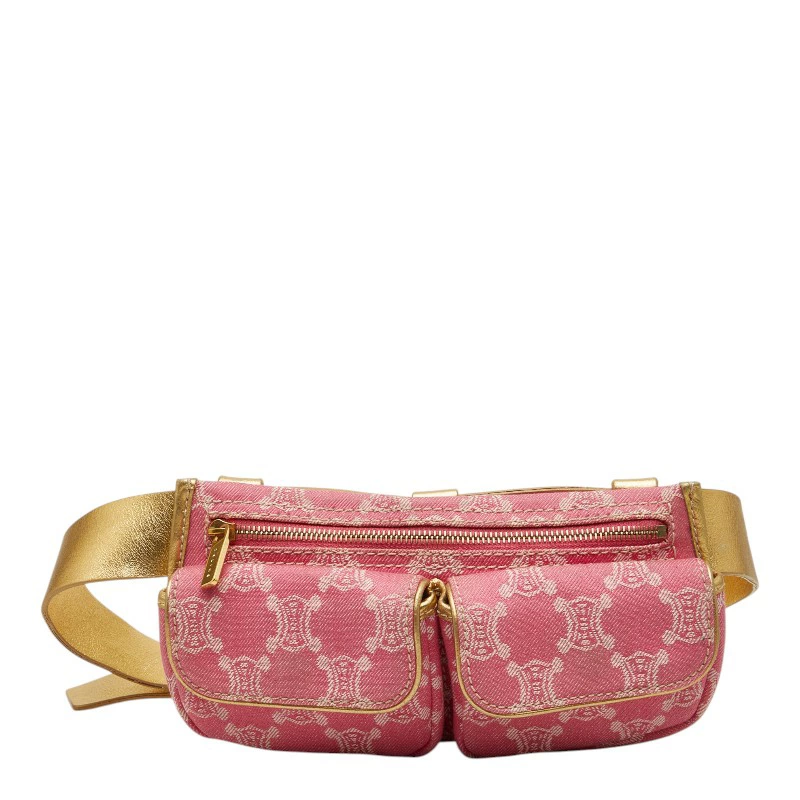 - セリーヌ トリオンフ ボディバッグ ウエストポーチ CE00/34 ピンク ゴールド デニム レザー レディース CELINE 【中古】