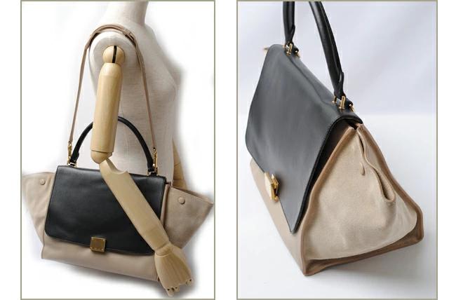セリーヌより、人気のハンドバッグ、トラペーズ・シリーズです。高級感の漂うやわらかい型押しカーフと、サイドは、スエードの素材感の違いをお楽しみいただけます。洗練さデザインは、セリーヌ伝統の風格を漂わせます。女性らしい曲線とシルエットが印象的です。シックな雰囲気を演出。ビジネスはもちろん、タウンバッグまで幅広くお使い頂きます。今、モデルや芸能人、セレブを中心に、ホットなスタイルのハンドバッグです!