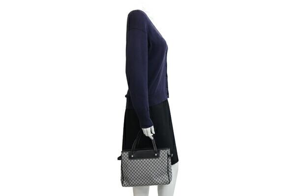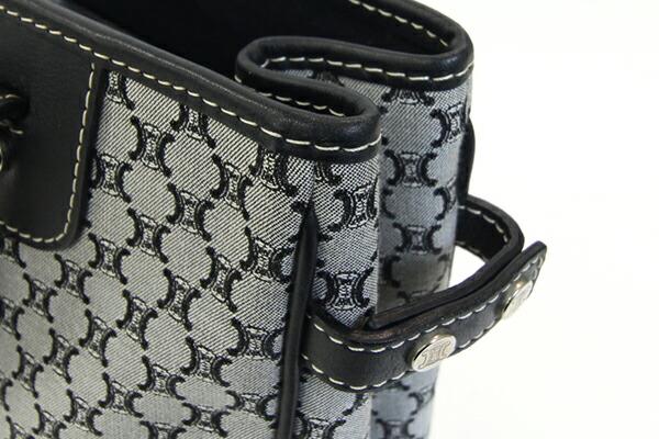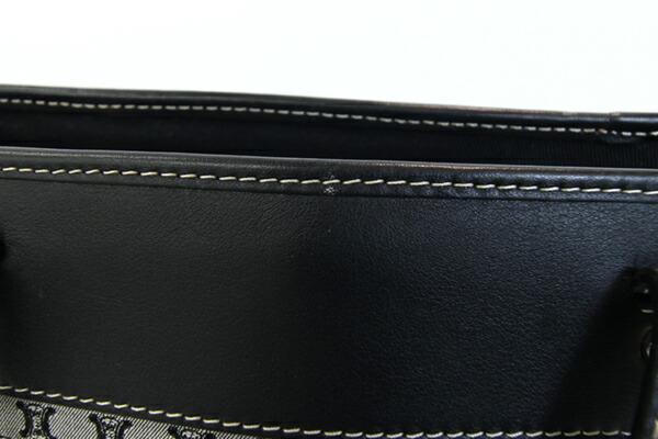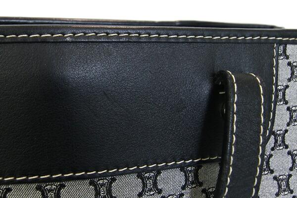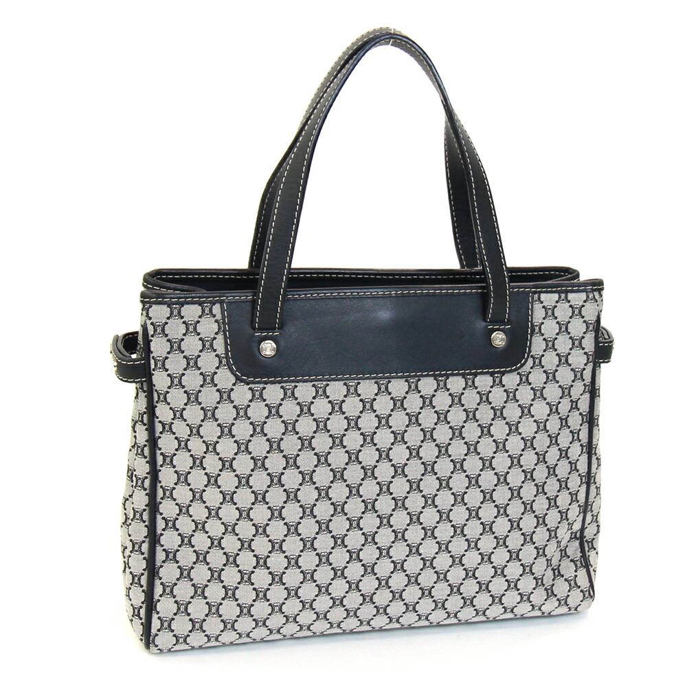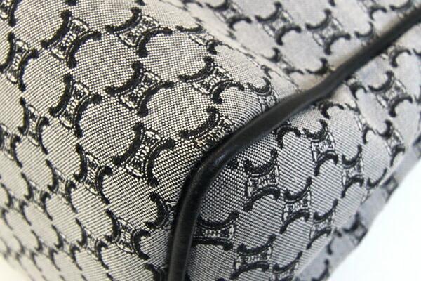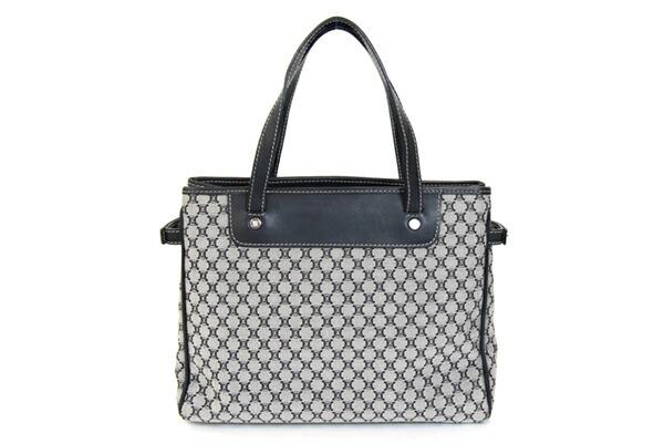 セリーヌハンドバッグマカダムグレーブラックキャンバスレザー中古ハンドトート小振り鞄レディース女性婦人CELINE