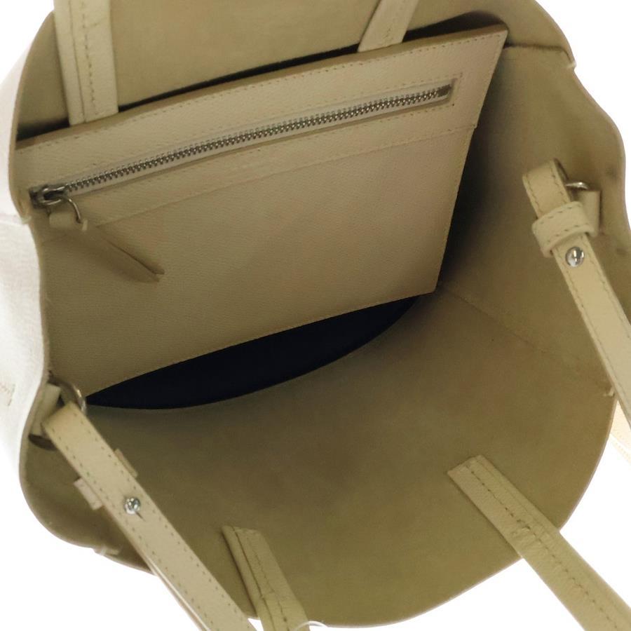 [モデル]バーティカルカバ スモール 2WAYバッグ ミニトートバッグ ハンドバッグ ショルダーバッグ アイボリー×ブラック シルバー金具 レザー