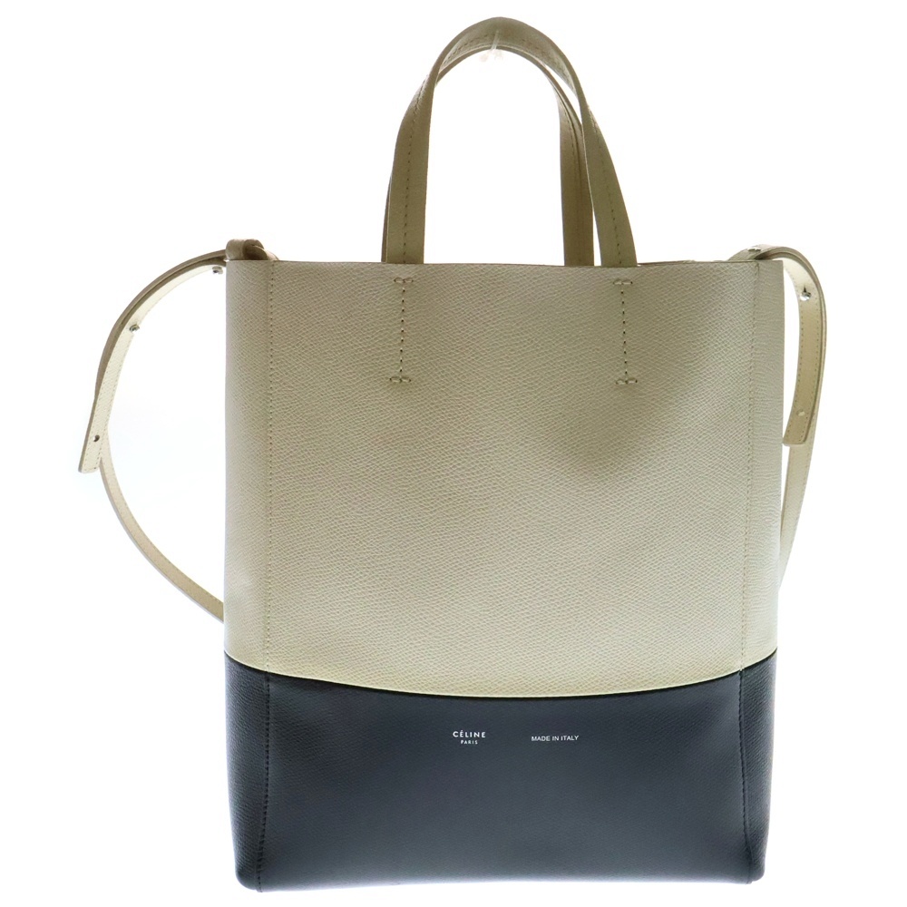 Celine Vertical Cabas Small 2-Way Bag, Mini Tote Bag, Handbag, Shoulder Bag, Ivory and Black Leather with Silver Hardware - Ivory/Black