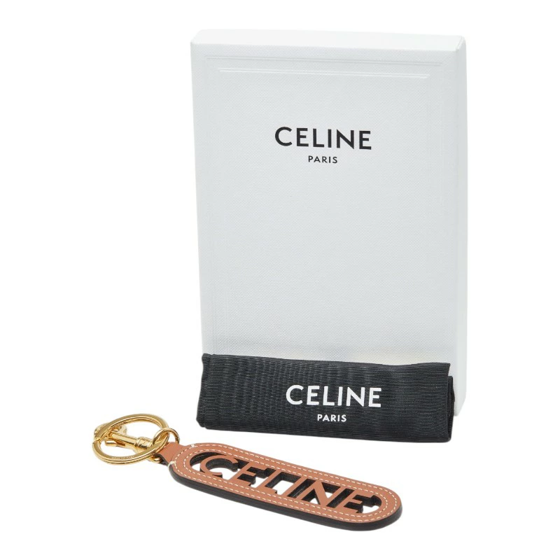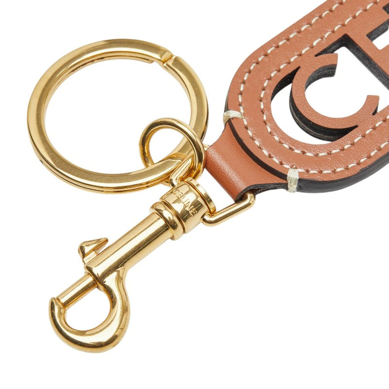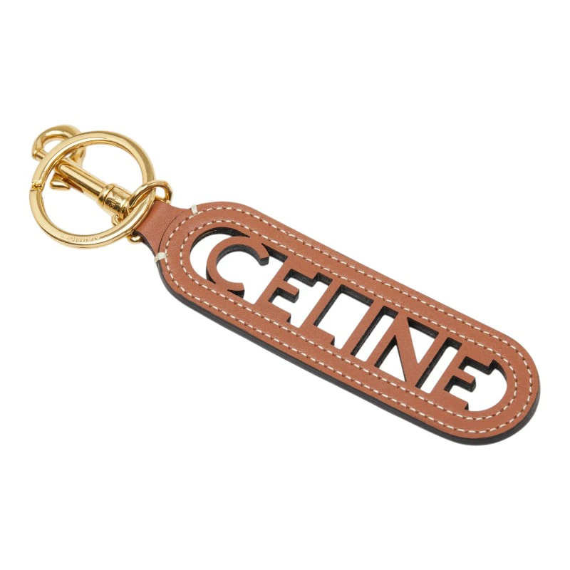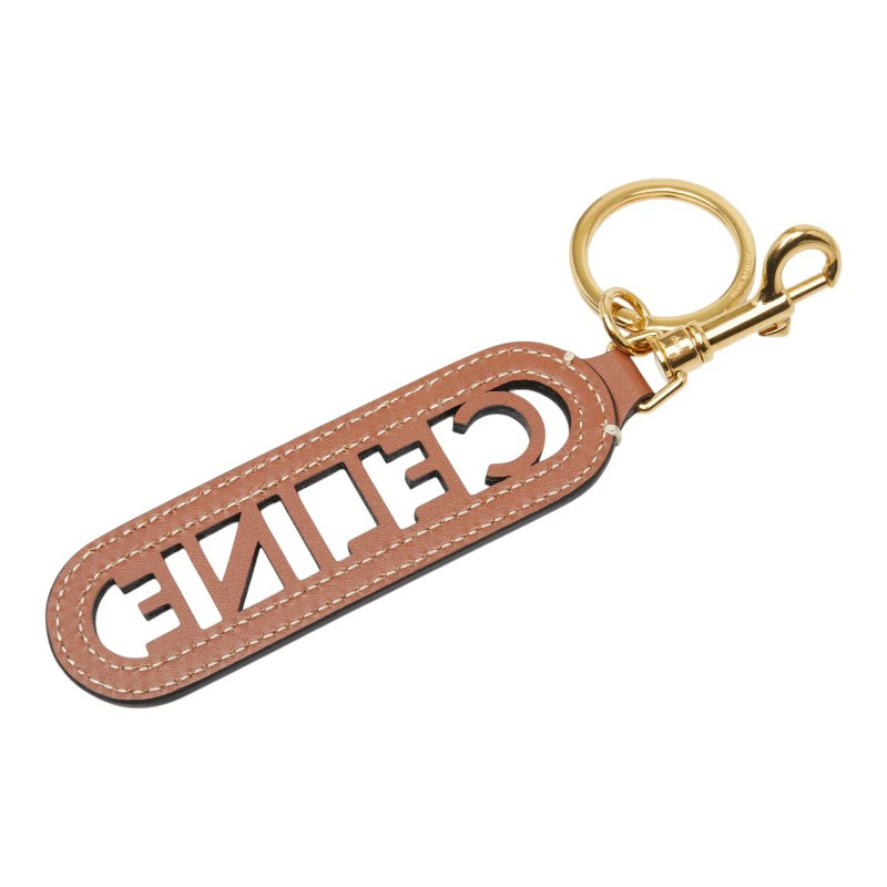 - セリーヌ パンチング キーリング キーホルダー チャーム 49I733DSD.04LU ブラウン ゴールド スムースカーフスキン レディース CELINE 【中古】