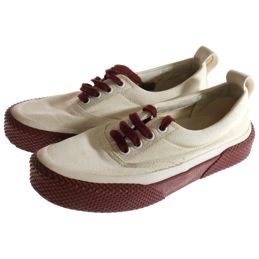 [モデル]フィービー期 キャンバスローカットスニーカー ホワイト/ボルドー レディース