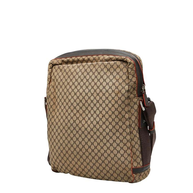 - セリーヌ マカダム ショルダーバッグ ブラウン キャンバス レザー メンズ CELINE 【中古】