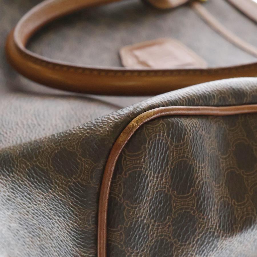[モデル]マカダム ミニボストンバッグ ハンドバッグ ブラウン ゴールド金具 PVC×レザー