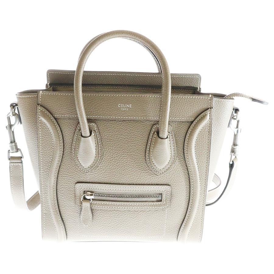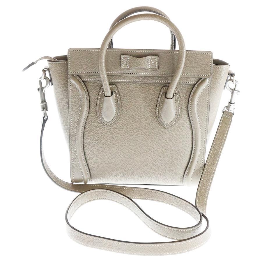 Celine Luggage Nano 2-Way Bag, Handbag, Mini Tote Bag, Shoulder Bag, Beige Leather with Silver Hardware - Beige