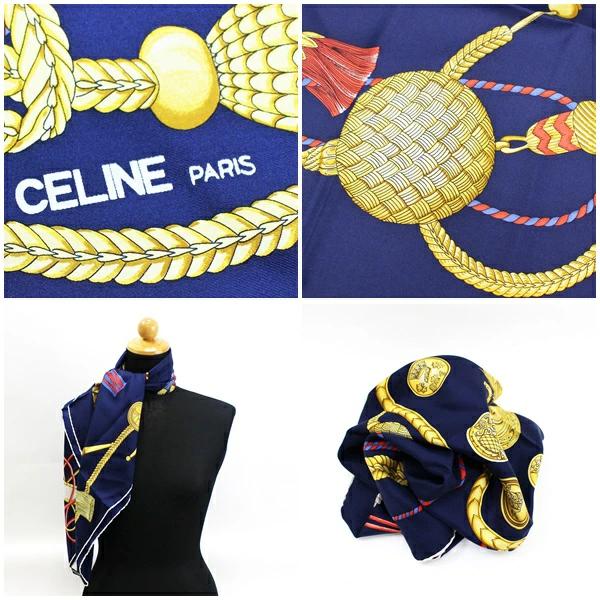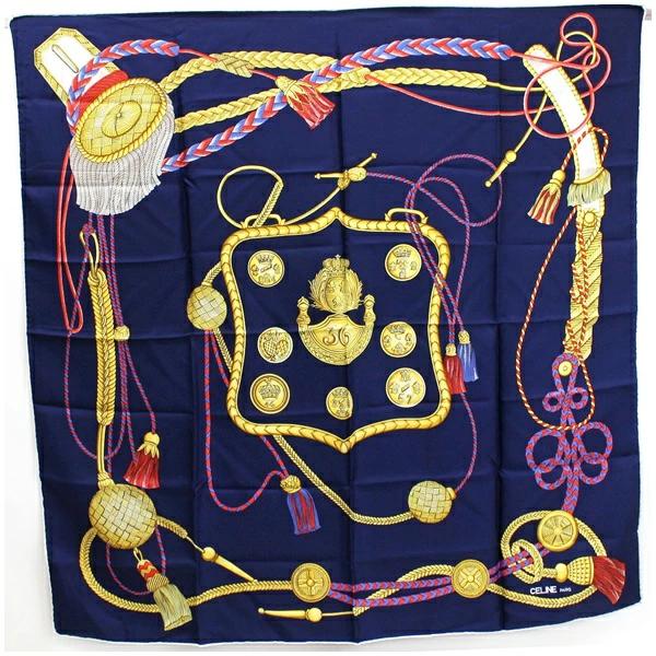 商品名セリーヌ 未使用 シルク スカーフ ネイビー タッセル柄 CELINE