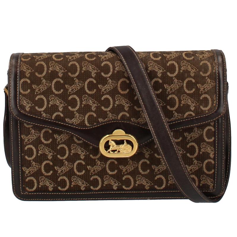 Celine Carriage Hardware C Sulky Shoulder Bag Canvas/Leather Women's Shoulder Bag Brown Like New Used