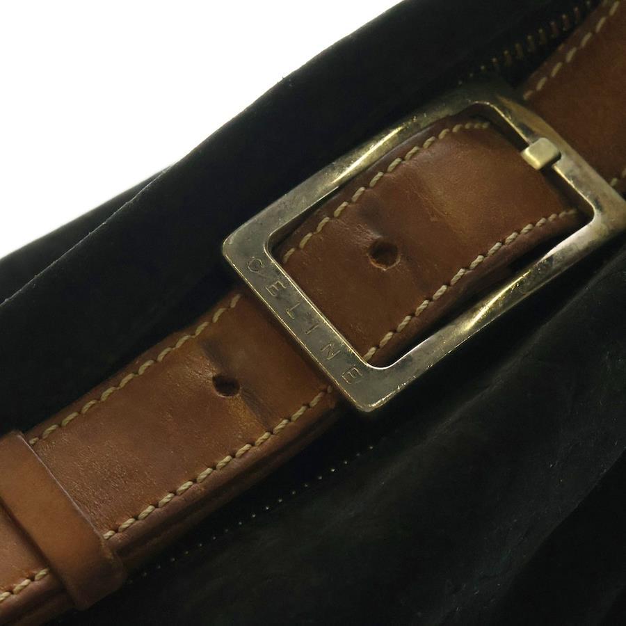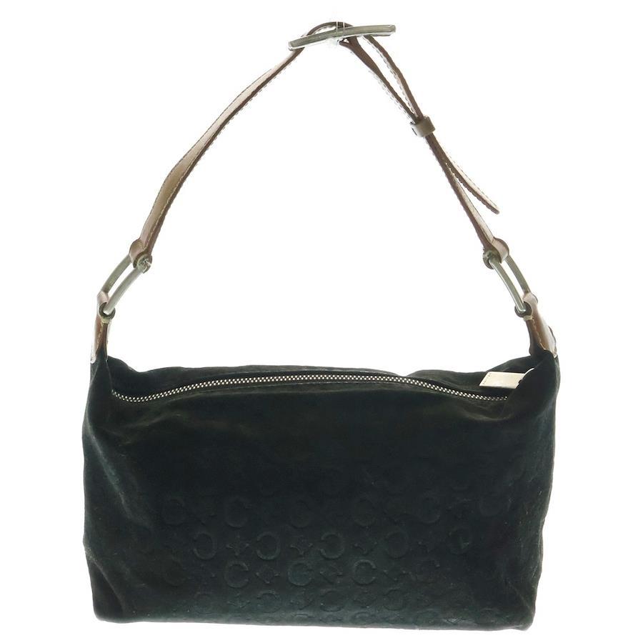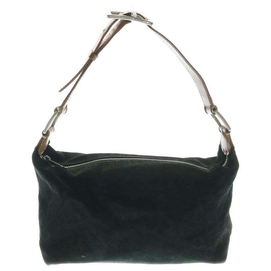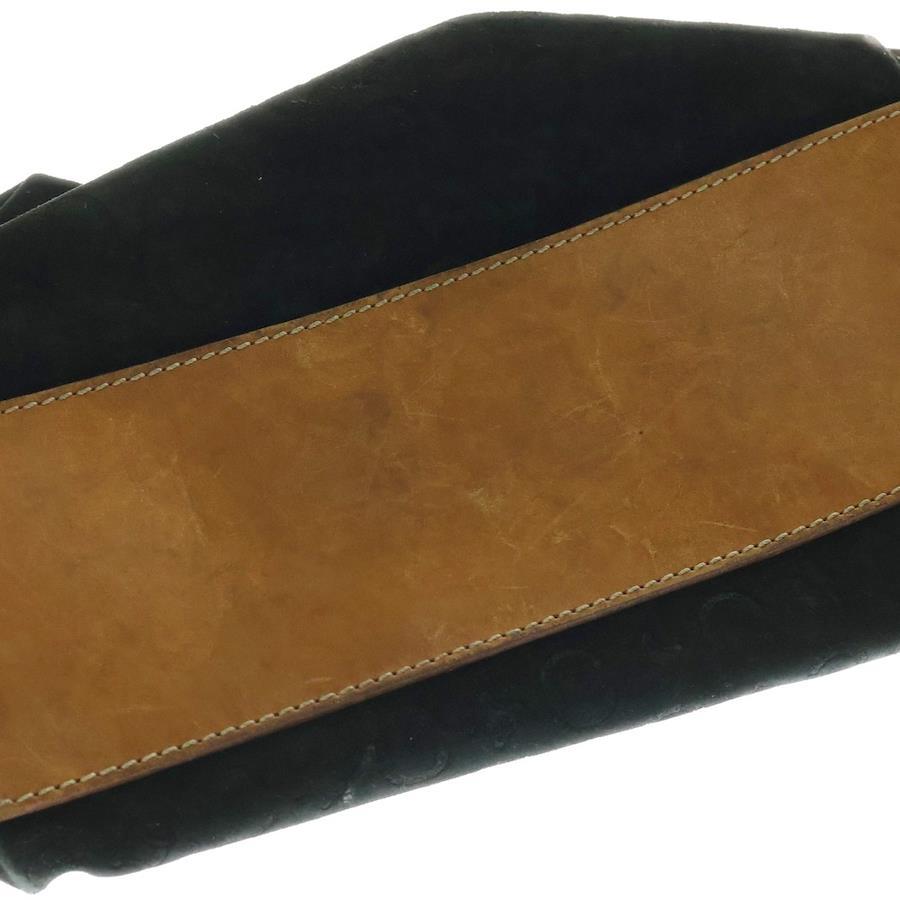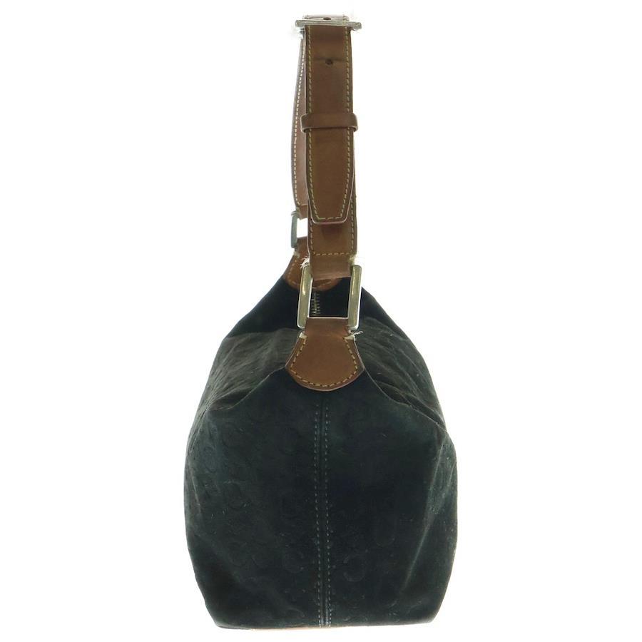 [モデル]Cマカダム エンボス スウェードレザー ワンショルダーバッグ シルバー金具 ブラック/ブラウン 〇
