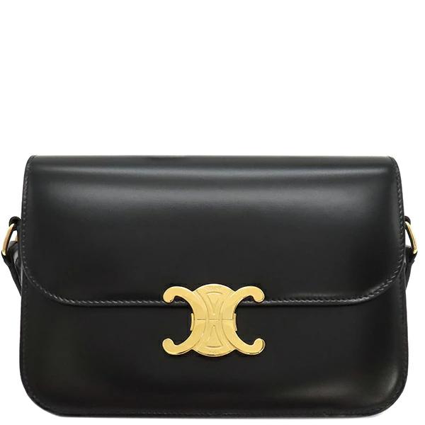 セリーヌ CELINE ショルダーバッグ クラシック トリオンフ バッグ カーフ シャイニーカーフスキン ブラック 黒 フラップ 斜め掛け ゴールド金具 187363BF4.38NO レディース 【箱】定番 人気 美品 【中古】 管理コード240500519216 全体コンディション詳細: ご使用や保管により軽度のダメージがございますが、比較的状態の良いお品です。※画像、コメント欄参照 コンディション詳細:中古美品 【外側】表面に僅かな擦れや薄汚れ、コバに僅かな擦れ、ショルダーに僅かな擦れやシワ、金具に小傷【内側】僅かな擦れや薄汚れ、フラップ裏に押し跡【におい】特になし ※箱に画像のような薄汚れがございます。